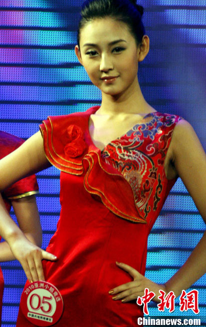 9月24日晚,2010亞洲小姐競選中國內地網絡賽區總決賽在北京舉行,15位佳麗“火辣、性感”登場角逐,經過泳裝、云錦晚裝秀、才藝展示以及現場知識問答等環節,最后選自西南網絡賽區的5號王欣獲得冠軍、華北網絡賽區3號劉曉智獲得亞軍、華北網絡賽區10號何婭萌獲得季軍。圖為參賽佳麗展示風采. 中新社發 錢興強 攝