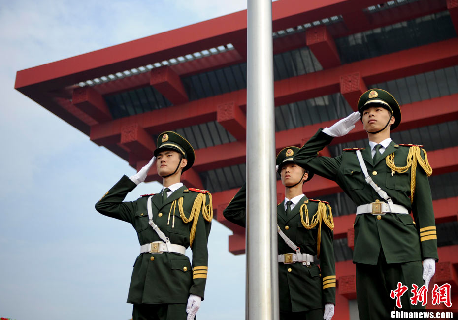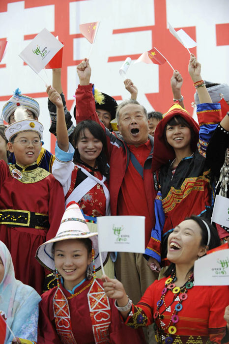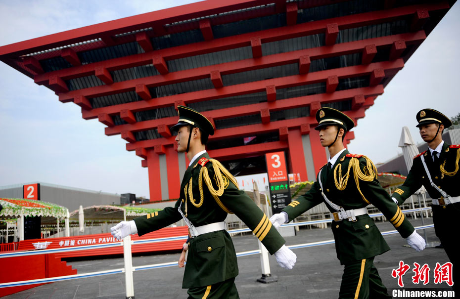 10月1日上午,上海世博會“中國國家館日”儀式在世博中心中央大廳舉行,全國人大常委會委員長吳邦國與夫人章瑞珍歡迎柬埔寨國王等外國政要出席儀式。中新社記者 任晨鳴 攝