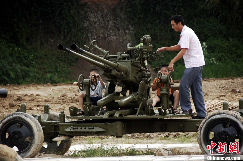 10月3日,福州游客到位于閩侯白沙灣的軍博園過把軍事癮。該軍博園濃縮薈萃了人民解放軍陸、海、空三軍的各類軍械裝備,其中還有經(jīng)歷實戰(zhàn)洗禮、屢獲戰(zhàn)功的功勛裝備。軍博園里還設置了軍事體驗項目,游客可以現(xiàn)場乘坐水陸兩用坦克,飛機駕駛室操縱、電動25海炮操作等等。