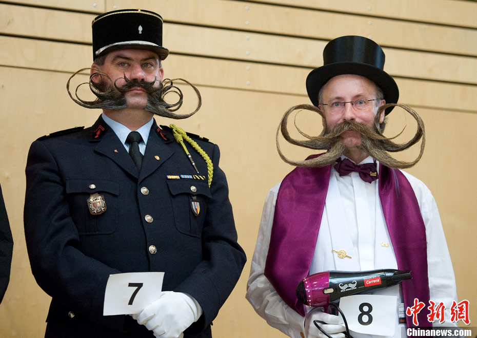 當地時間10月2日,“2010歐洲胡須錦標賽”在奧地利舉辦,選手們“帶著”精心修整的美鬢參加大賽。