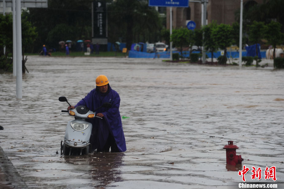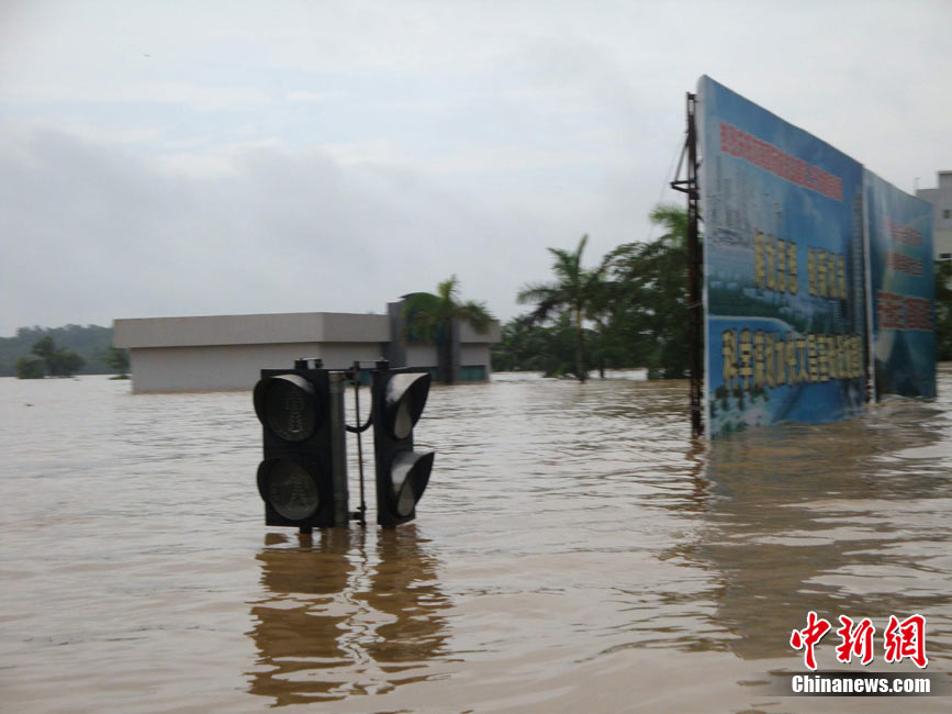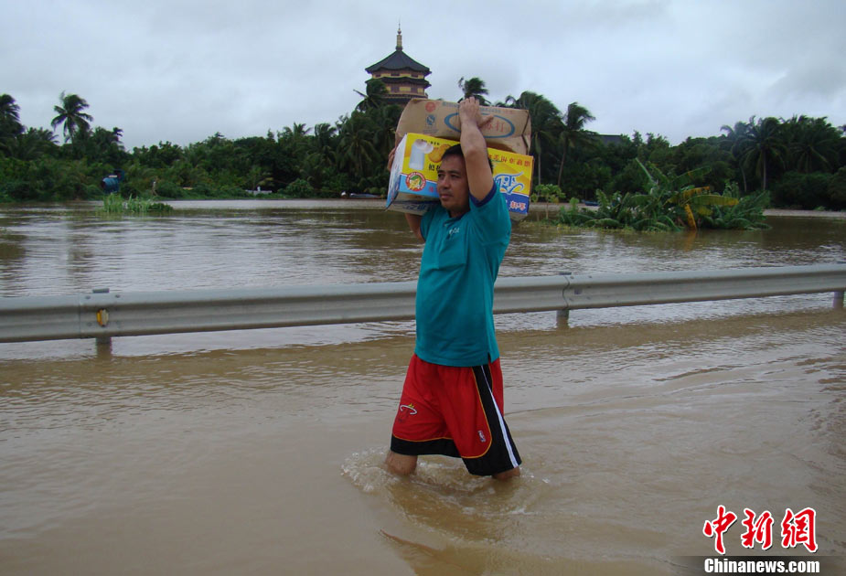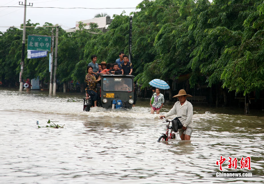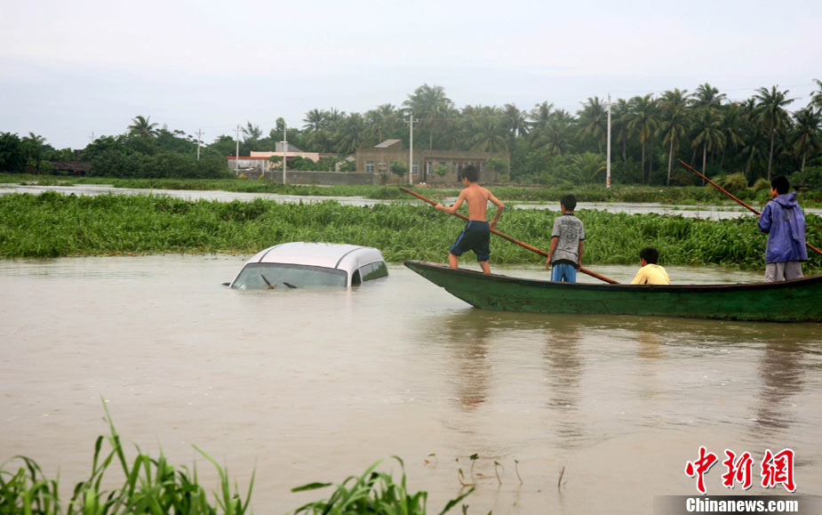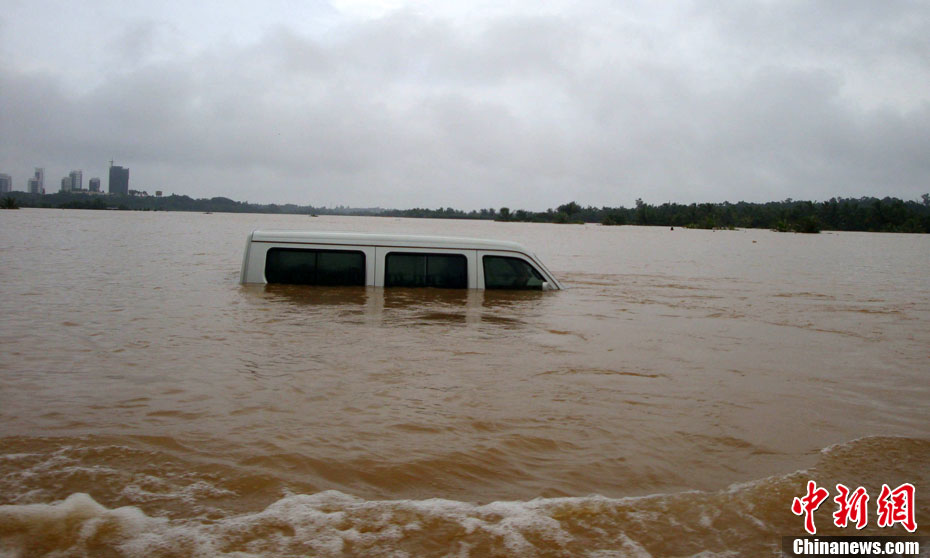 10月6日消息,海南從9月30日開始的強降雨仍在持續。海南省氣象臺再次將暴雨二級應急響應提升為一級,提請各沿海港口迅速做好漁船回港避風工作。圖為汽車在海南瓊海市涉水路段經過。 中新社發 蒙鐘德 攝 圖片來源:cnsphoto