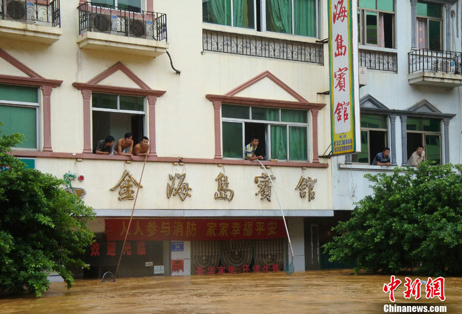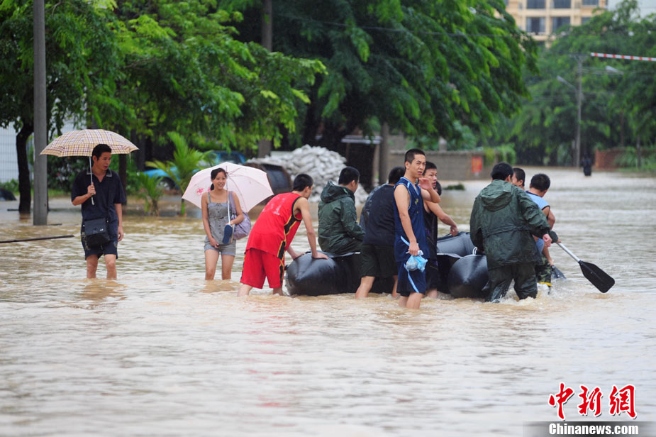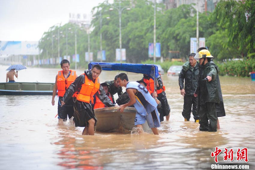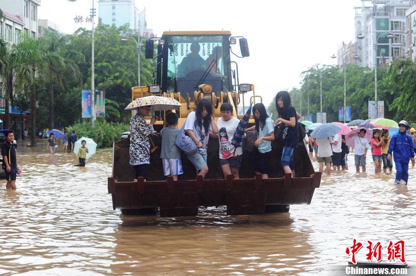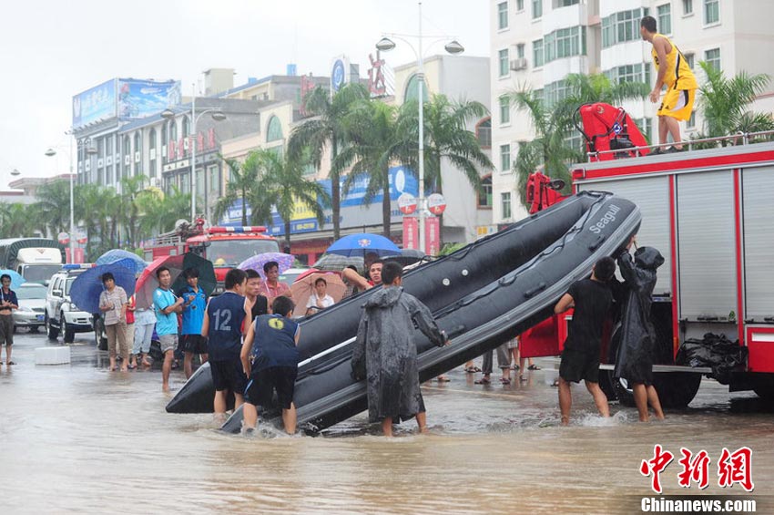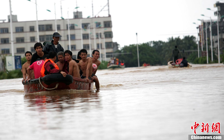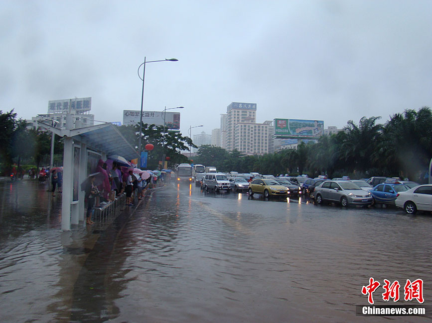 10月6日消息,海南從9月30日開始的強降雨仍在持續。海南省氣象臺再次將暴雨二級應急響應提升為一級,提請各沿海港口迅速做好漁船回港避風工作。圖為汽車在海南瓊海市涉水路段經過。 中新社發 蒙鐘德 攝 圖片來源:cnsphoto