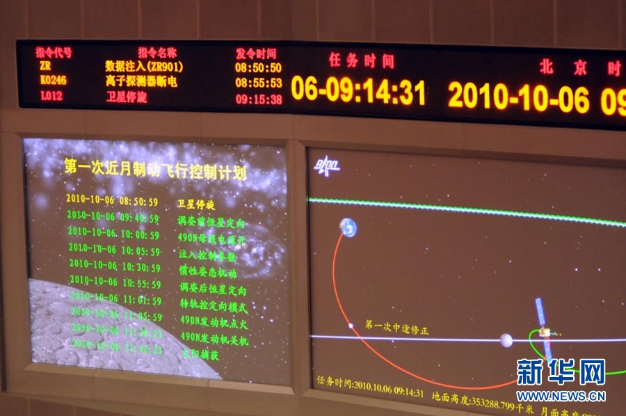 10月6日,嫦娥二號(hào)在近月點(diǎn)精準(zhǔn)“剎車”,順利進(jìn)入100公里軌道繞月。
