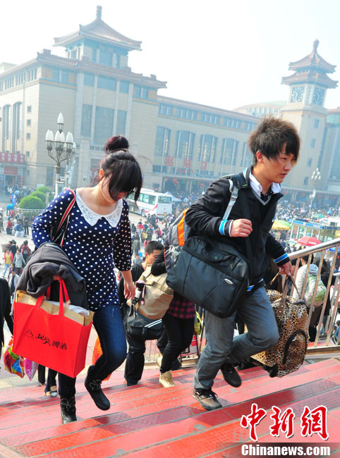 2010年10月6日,國慶“十一”黃金周長假即將結束,北京站、北京西站迎來返程客流高峰。樊甲山 攝 圖片來源:CFP視覺中國