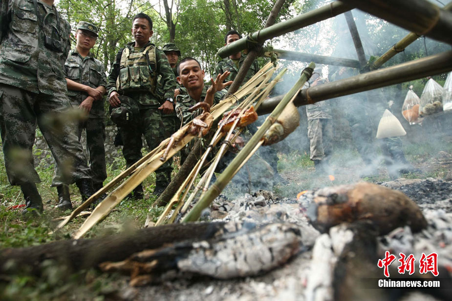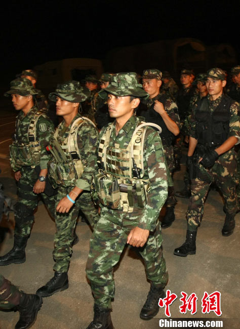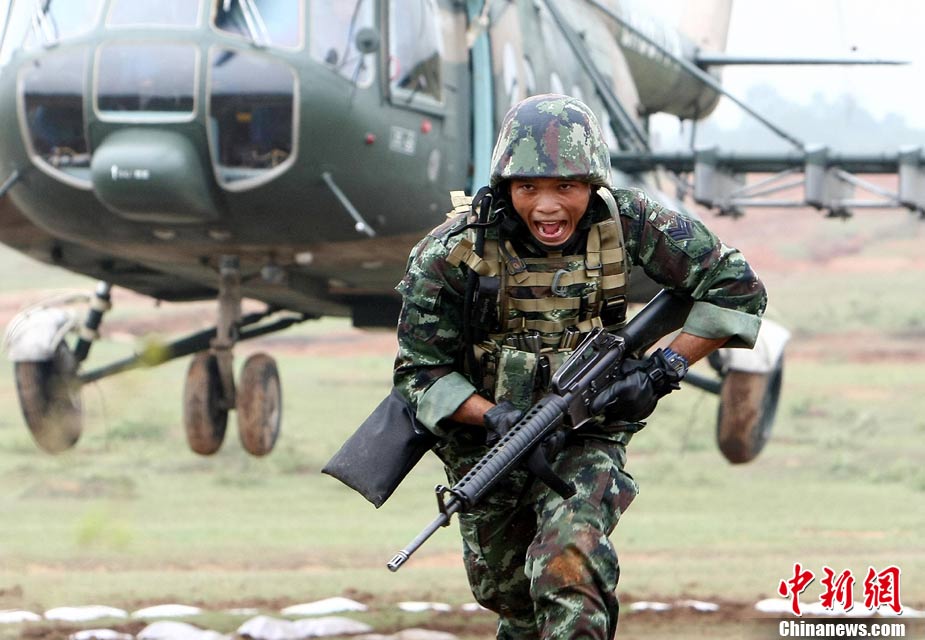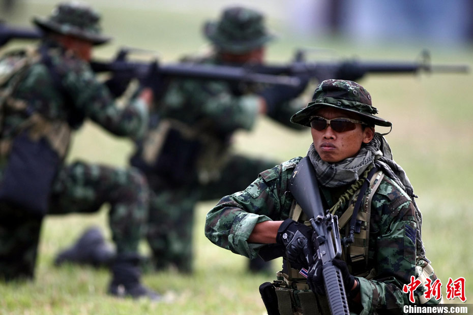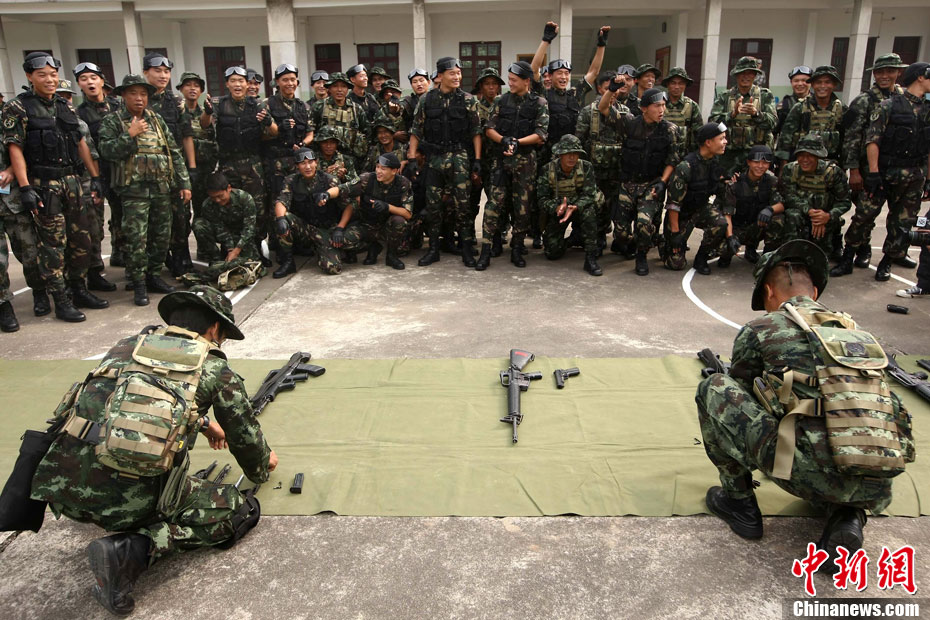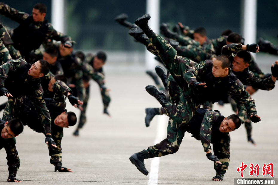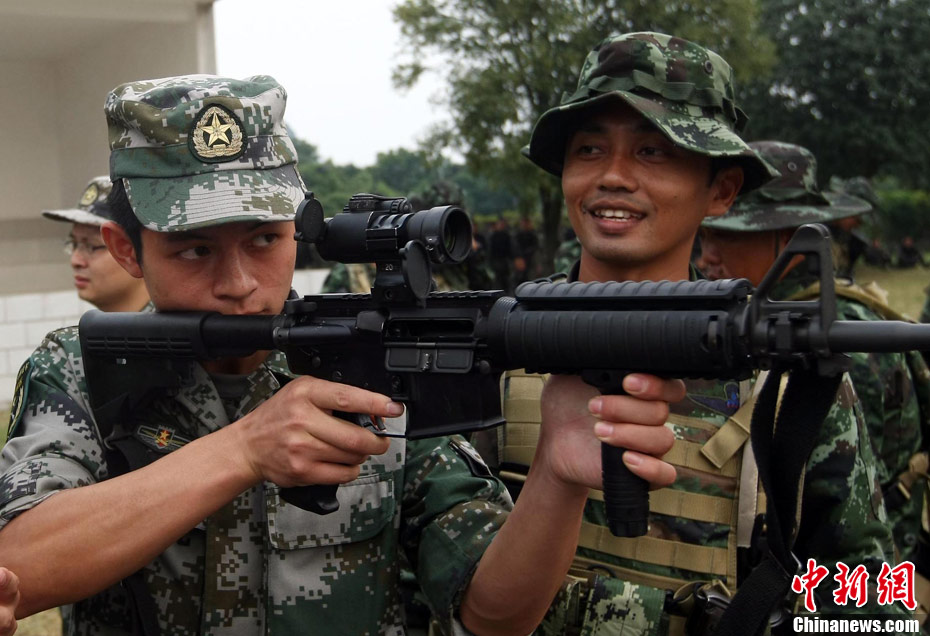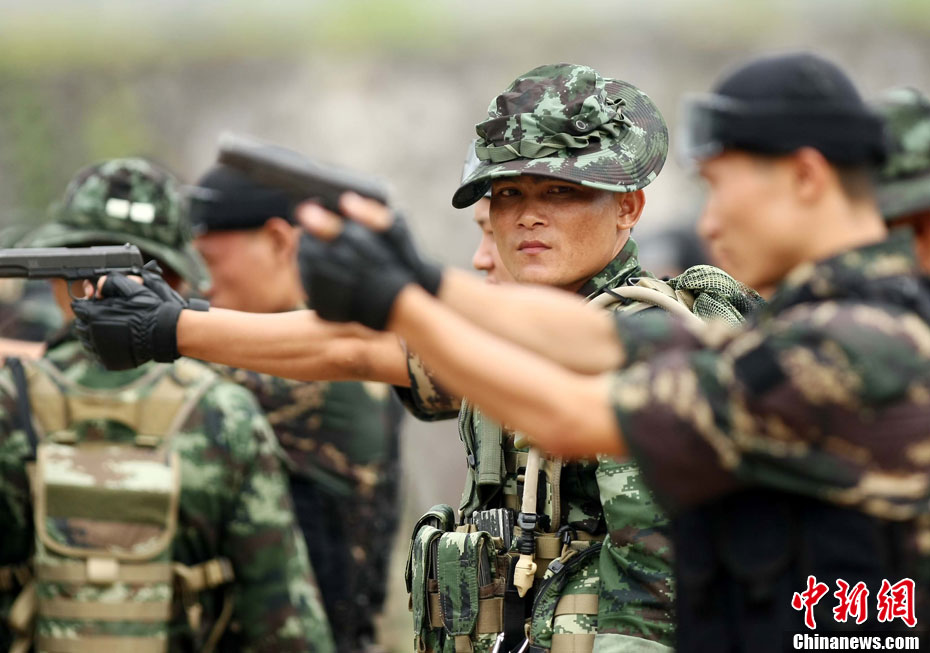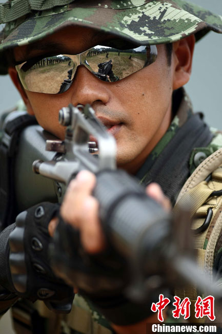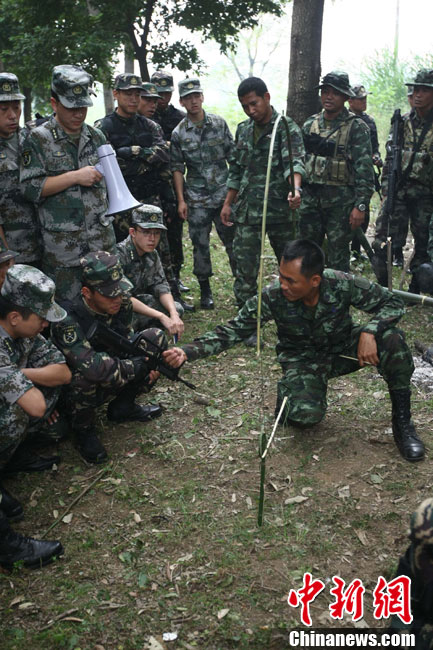 10月8日,中國、泰國兩軍特種部隊“突擊—2010”反恐聯合訓練在廣西桂林拉開帷幕,這是兩國之間舉行的第三次陸軍聯合訓練。分析人士指出,這次聯訓將進一步鞏固兩軍關系,提高聯合反恐作戰能力,利于維護地區和平穩定。此次聯訓為期15天,這是中泰兩國陸軍首次就城市反恐課題開展聯訓。圖為中國參訓部隊在開幕式上表演房屋突擊。中新社記者 杜洋 攝