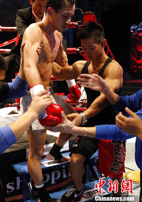 10月9日晚,由馬來西亞IPC國際集團和中國國際文化傳播中心以及英雄傳說賽事機構聯手主辦的“英雄傳說-決戰云頂”世界搏擊王者爭霸賽暨中泰拳王爭霸戰在馬來西亞吉隆坡云頂舉行。圖為泰國拳王雅桑克萊與中國王冠對決。 中新社記者 錢興強 攝