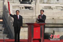 10月12日上午,廣州亞運(yùn)會(huì)火炬點(diǎn)燃暨傳遞啟動(dòng)儀式在北京天壇祈年殿南廣場(chǎng)舉行。10點(diǎn)17分,中共中央總書(shū)記、國(guó)家主席胡錦濤點(diǎn)燃主火炬。 中新社記者 沈晨 攝