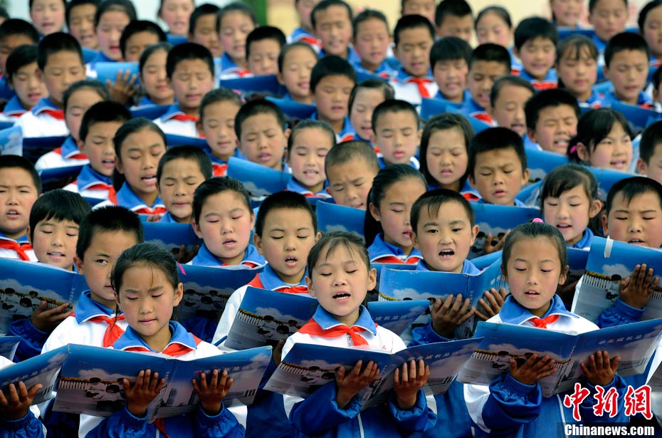 10月16日,運城舜帝德孝文化節在山西省運城市鹽湖區鳴條舜帝陵開幕。舜帝以其獨特的歷史地位和杰出的歷史功績,被后人尊崇為“百孝之首”、“道德之祖”和“文明之元”,本屆文化節主題也定義為“德政千秋、孝行天下”。圖為運城千名小學生齊誦《弟子規》。中新社發 劉震 攝