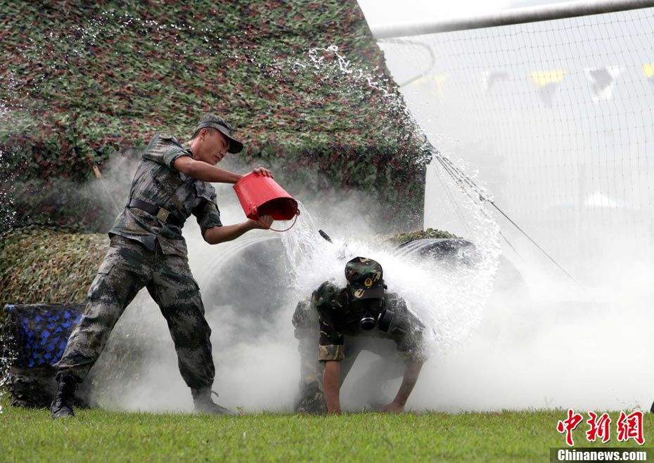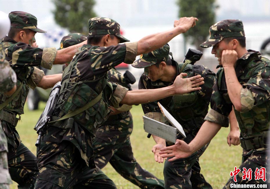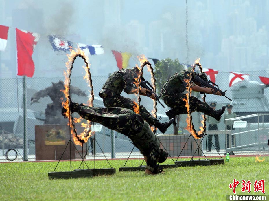 10月16日,中國人民解放軍駐港部隊特種兵在香港昂船洲海軍基地進行“獵人戰(zhàn)斗”演練,展示過硬的搏擊功夫。當(dāng)天,駐軍與香港各大院校大學(xué)生聯(lián)誼活動,以各種形式相互交流,增進香港學(xué)生對國家的了解。 中新社發(fā) 洪少葵 攝