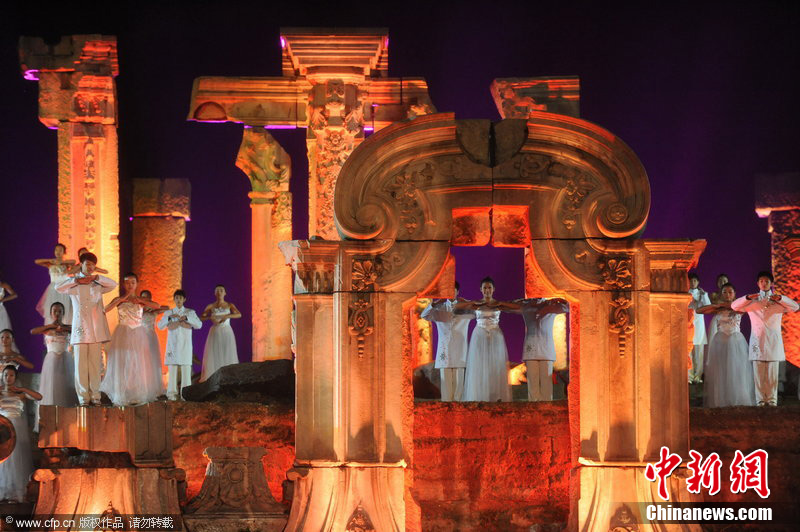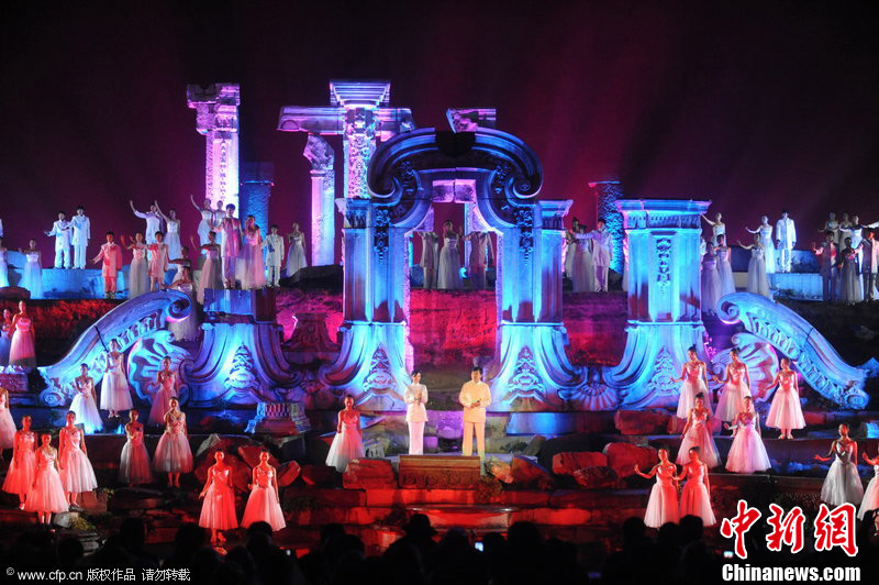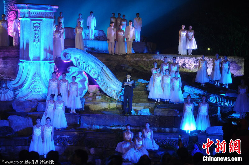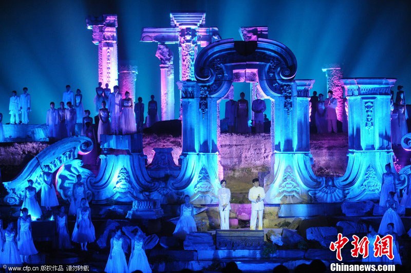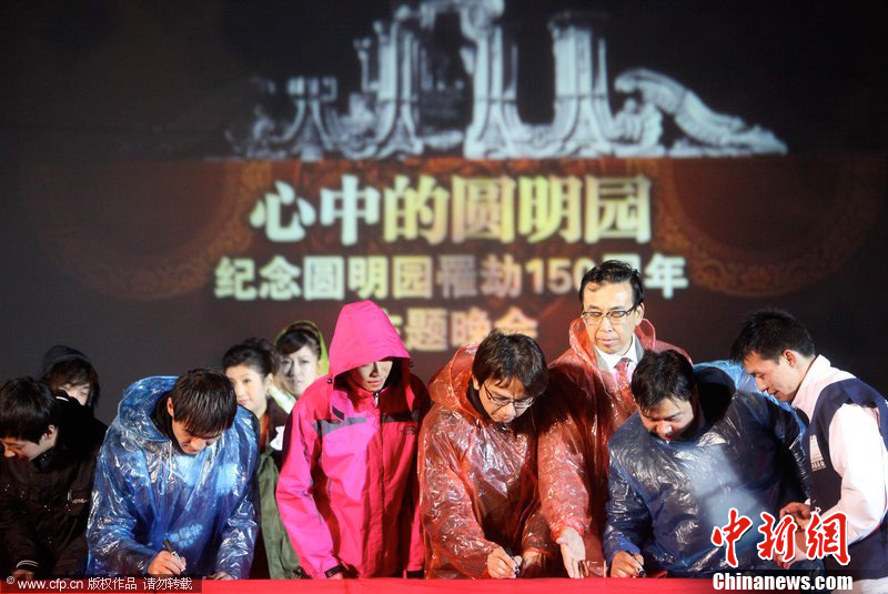 2010年10月18日晚,北京,圓明園罹難150周年紀念儀式在大水法前舉行。億佰 攝 圖片來源:CFP視覺中國