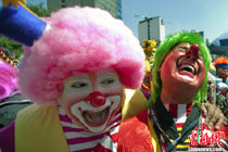 10月19日,第16屆亞運(yùn)火炬在惠州站傳遞。圖為73棒火炬手梁志強(qiáng)在火炬?zhèn)鬟f中拋球取悅。 中新社發(fā) 陳文 攝