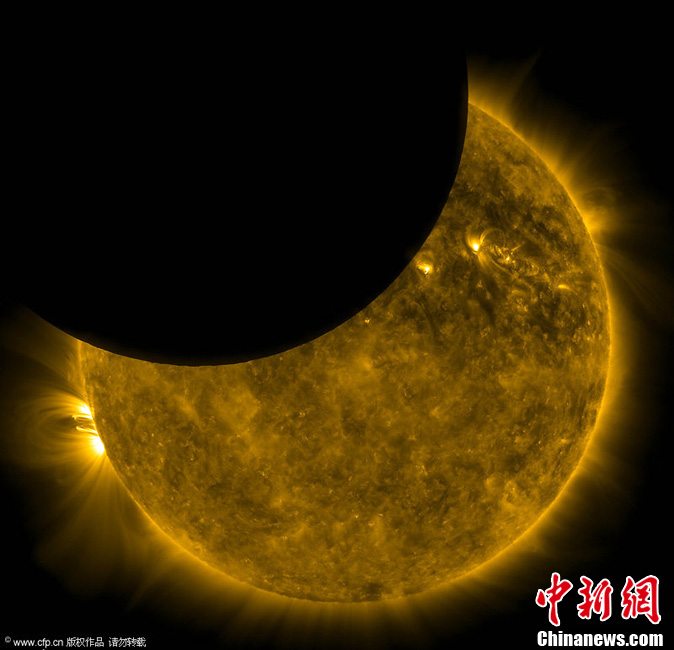 2010年10月20日消息,美國宇航局(NASA)日前公布了SDO探測器拍攝到的日食畫面。10月7日,圍繞地球運行的月亮從探測器與太陽之間經過,這一刻正好被SDO記錄了下來。