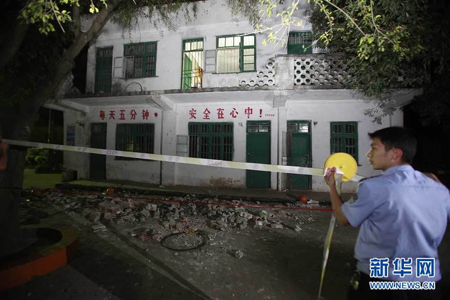 10月21日,警方在發(fā)生護欄坍塌事故的教學(xué)樓外拉起警戒線。當(dāng)日下午4時40分左右,廣西柳江縣洛滿鎮(zhèn)洛滿中心小學(xué)一棟兩層教學(xué)樓二樓走廊護欄發(fā)生坍塌事故。截至21日晚9時,共有27名學(xué)生墜落不同程度受傷,4人傷勢較嚴(yán)重。