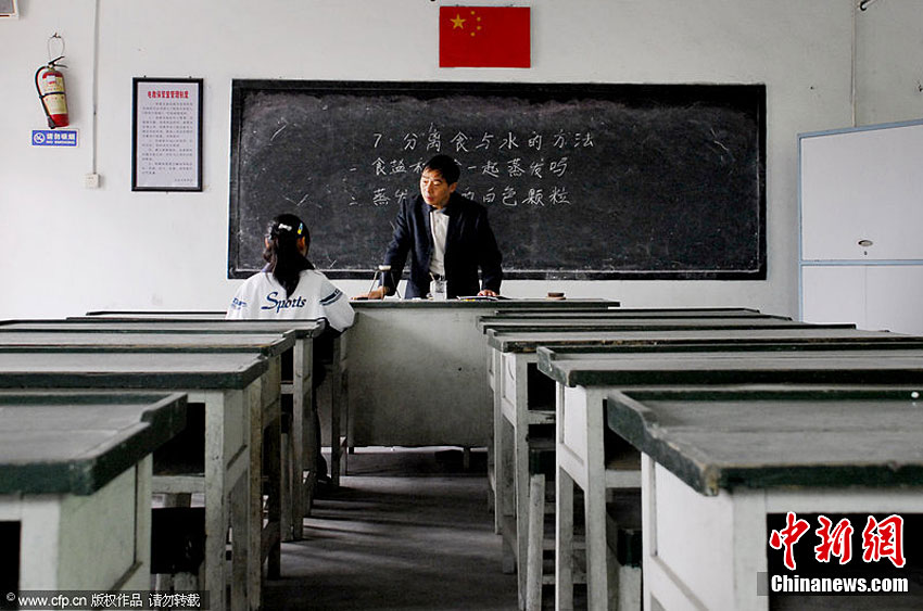 成都郫縣清水小學搬遷前夕,一位學生因家中搬遷原因未轉校,學校將為其授課到最后。她叫孫悅,讀4年級。每天早上8點多,她一個人來到學校,下午4點多,她又一個人回家。只有她的自行車,能一路陪著她。教室里,除了她只有老師。和孫悅一樣留守學校的,還有19名老師。老師們早上來到學校的第一件事,是打掃衛生。原來由一個班負責的公共區域,現在完全由老師來負責。位于成都郫縣德源鎮勝利村的清水小學,全校目前只有1個學生在校讀書,老師仍按照原定課表,為其上課。這種類似“家教一對一式”的教學方式,已整整持續了一周。圖片來源:CFP視覺中國