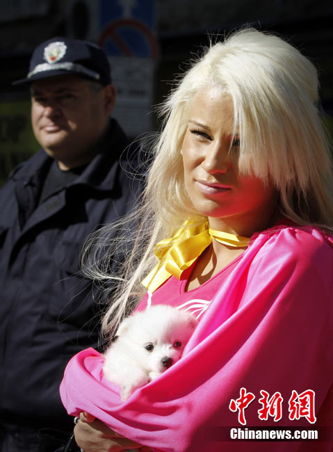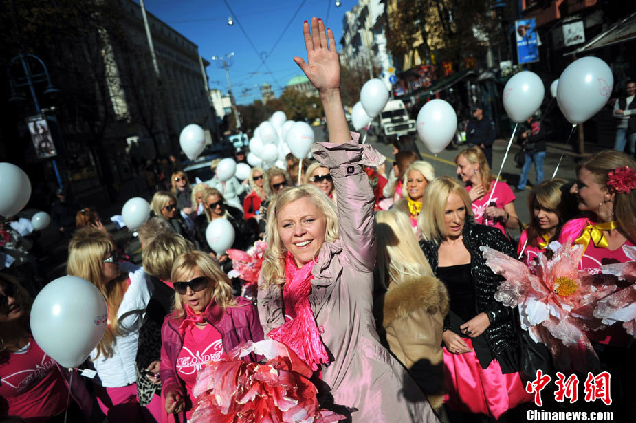 近日,在保加利亞首都索非亞舉行了金發女郎大游行,眾多美女在街頭大秀嫵媚身材。