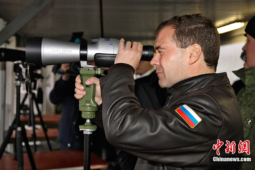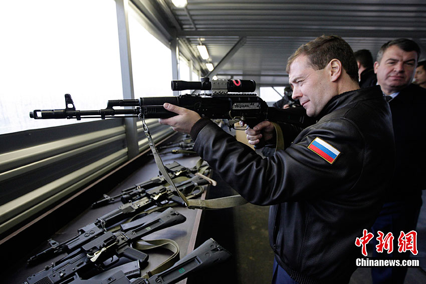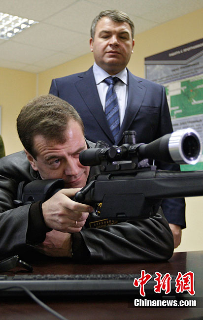 俄總統(tǒng)梅德韋杰夫端槍瞄準 “跟風(fēng)”普京扮硬漢