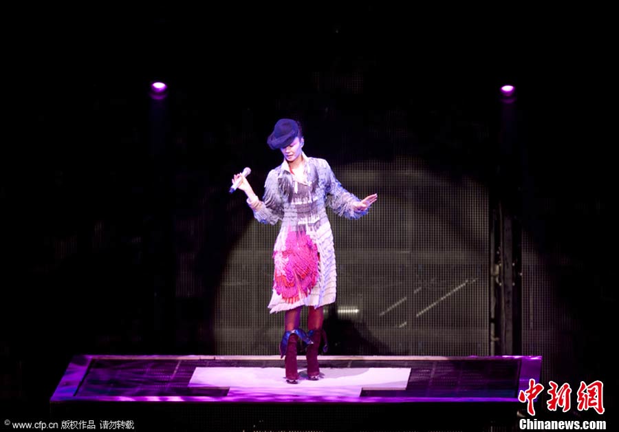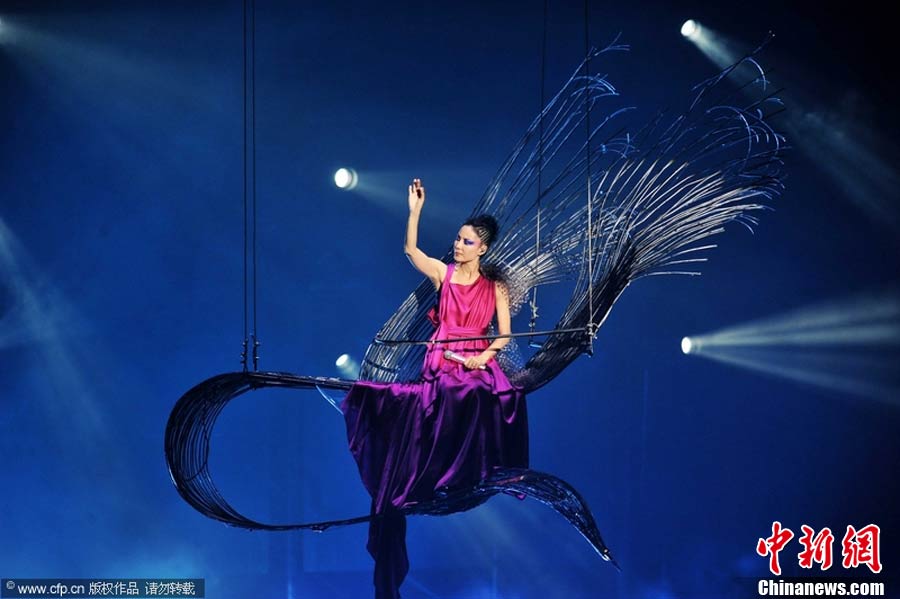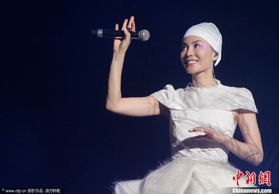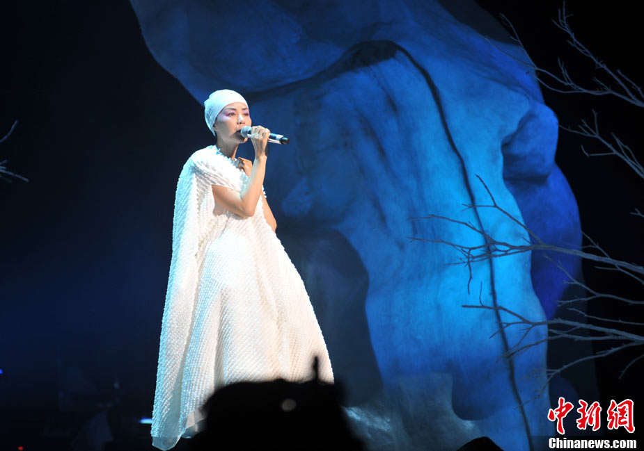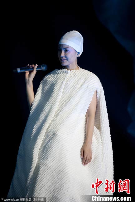 10月29日晚,暌違六年,華語樂壇天后級人物王菲在自己的家鄉——北京,再次開嗓,為歌迷奉獻出一場精彩絕倫的演唱會。整場演出,王菲在造型上十分搶眼,不論最開始的一身雪白,脫去外套后的蓬蓬裙顯得清新脫俗,或是中間段的摩登女郎裝扮、騎士裝、拖地長禮服,都令她展現不同韻味。圖片來源:CFP視覺中國