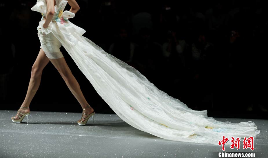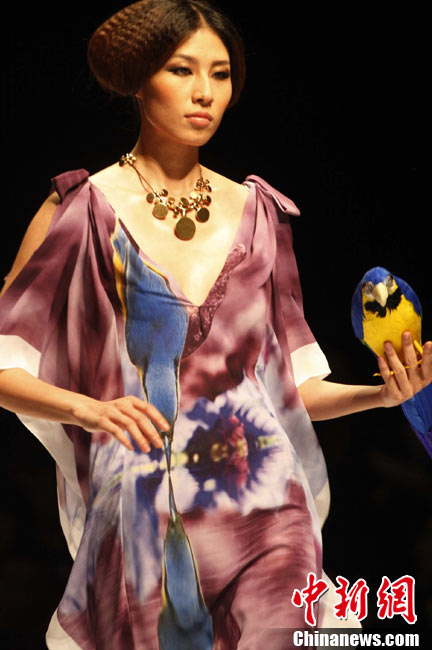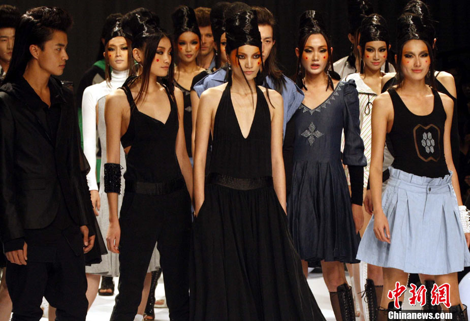 10月29日,北京舉行的中國國際時裝周上舉行 “鐘健:運動旅行夜生活”,本季設計選取了幾個極具幾何感和現代感的中國廣西民俗紋樣,將它們與現代年輕人的生活方式關聯在一起!斑\動”、“旅行”與“夜生活”三種狀態展現不同風格傾向的民俗紋樣與裝飾技巧,也綜合體現現代年輕人的生活方式。 中新社記者 錢興強 攝