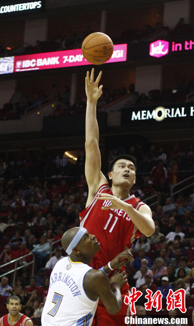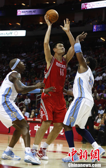 10月31日,火箭在主場揭幕戰(zhàn)中94-107不敵掘金,遭遇三連敗,創(chuàng)下11年來最差開局戰(zhàn)績。姚明缺陣一場后復出,10投6中拿下14分、6個籃板和2個蓋帽。