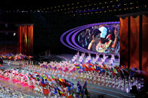 10月31日,中國(guó)2010年上海世博會(huì)閉幕式在上海舉行,楊瀾陪同盲童出席。 中新社記者 趙振清 攝