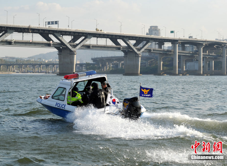 當地時間11月3日,韓國首爾附近的漢江中韓國水警舉行了針對G20峰會安保工作的演練。