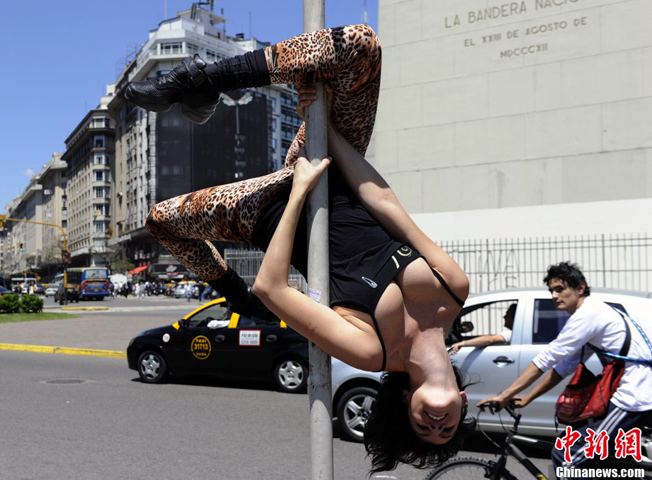 阿根廷街頭上演火辣鋼管舞