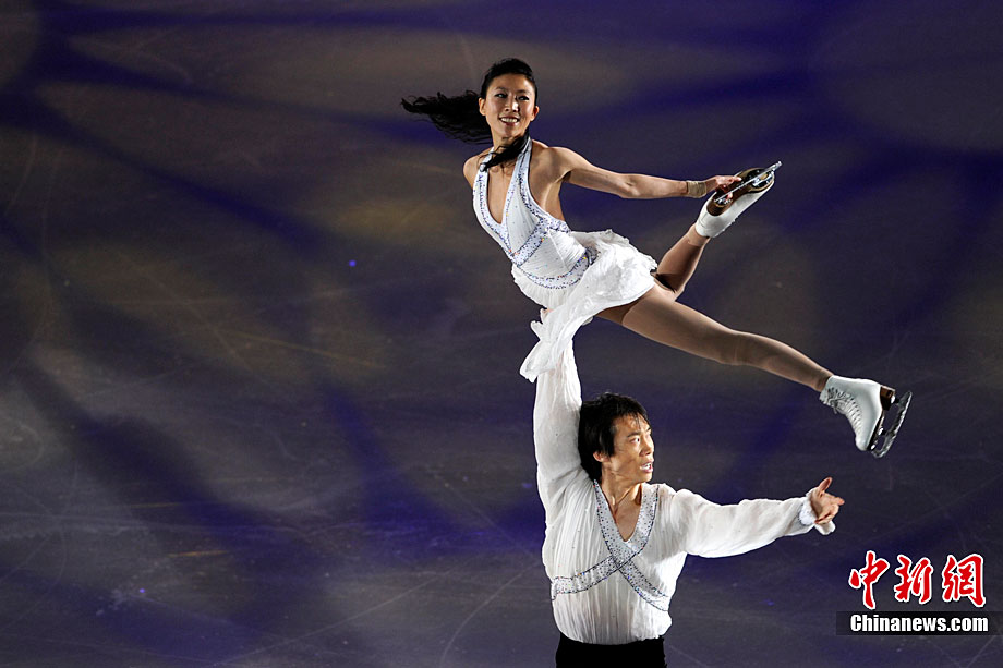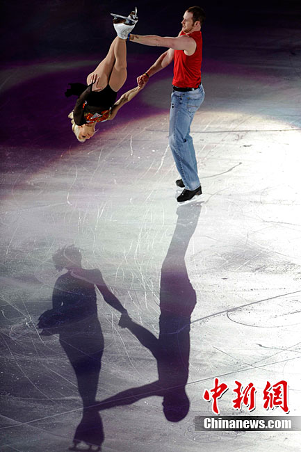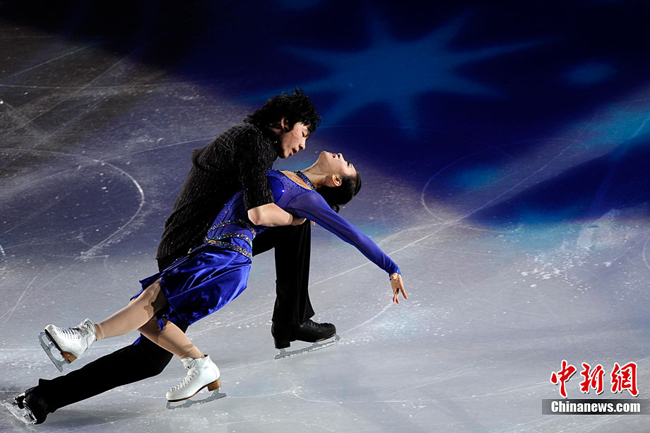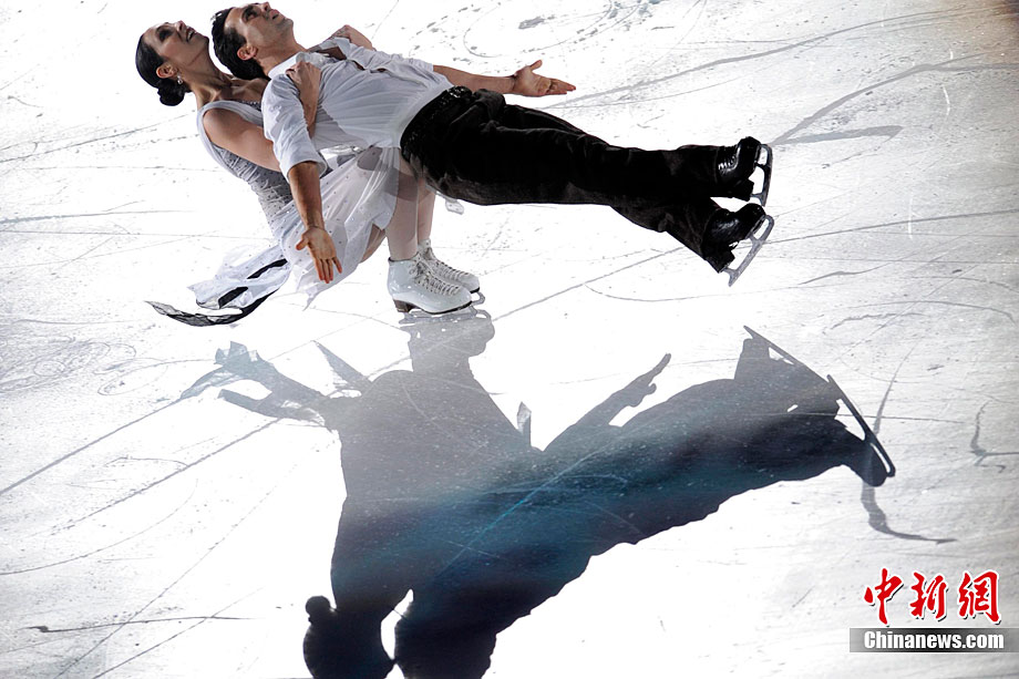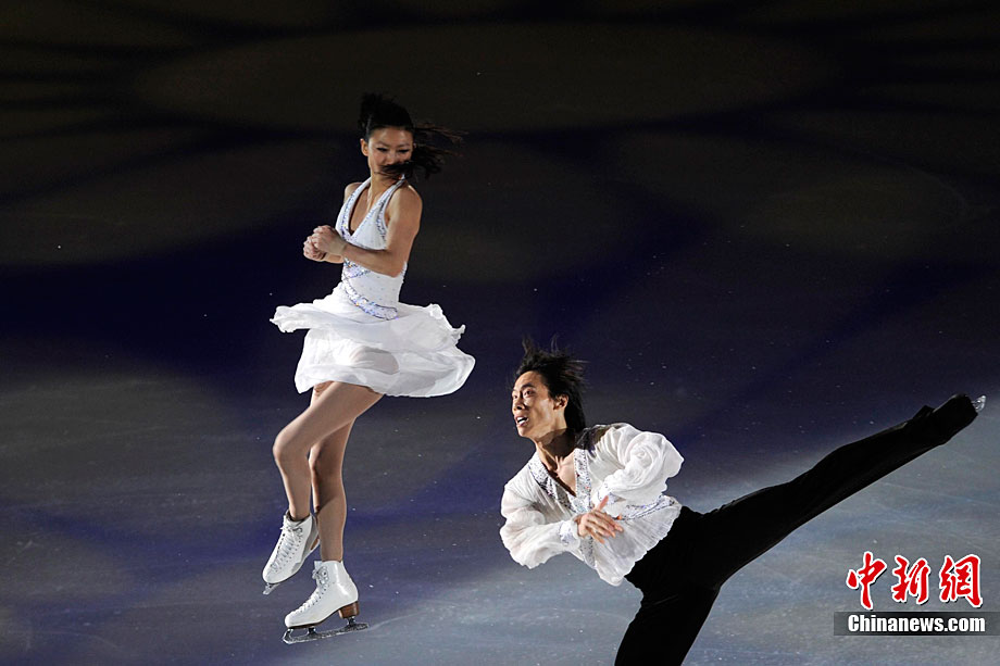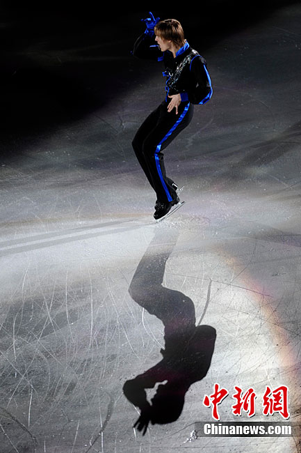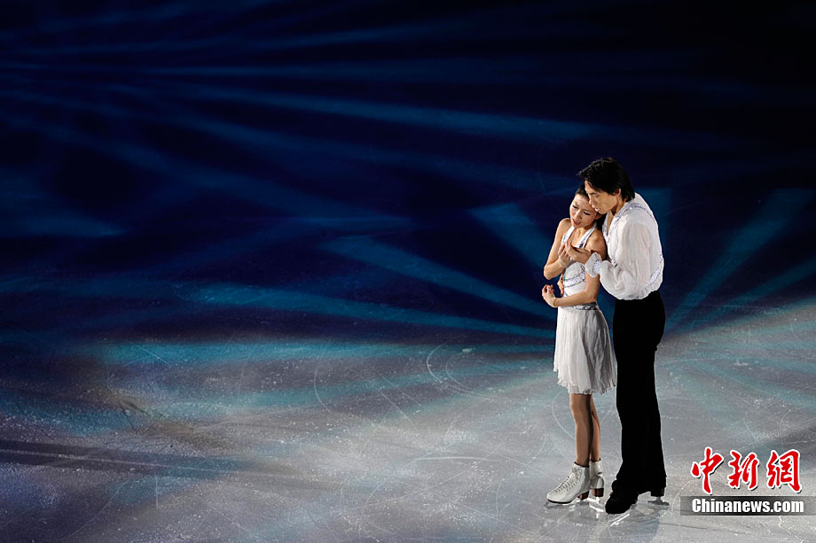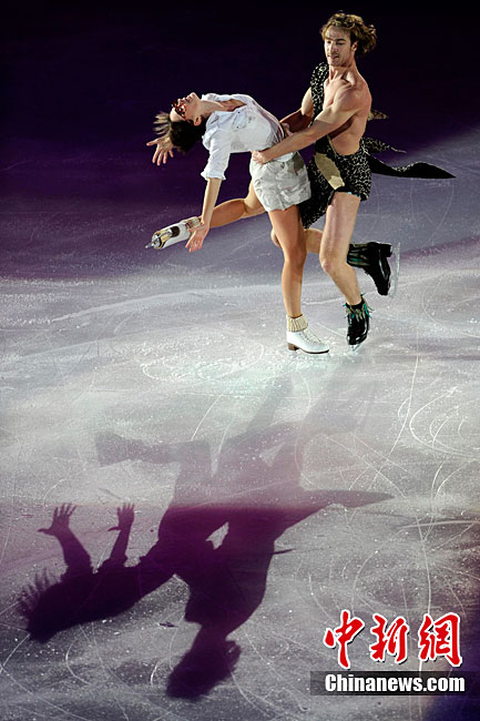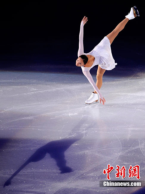 11月7日,2010年中國(guó)杯世界花樣滑冰大獎(jiǎng)賽答謝表演在北京首都體育館進(jìn)行,所有參賽運(yùn)動(dòng)員為觀眾奉獻(xiàn)上了一場(chǎng)美輪美奐的冰上舞蹈盛宴。中新社記者 富田 攝