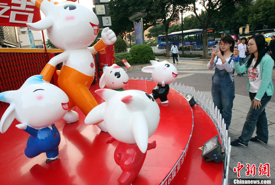 11月9日,隨著第16屆亞運會的臨近,廣州街頭亞運氛圍漸濃。亞運元素成為廣州街頭一道美麗風景。中新社記者 湯彥俊 攝