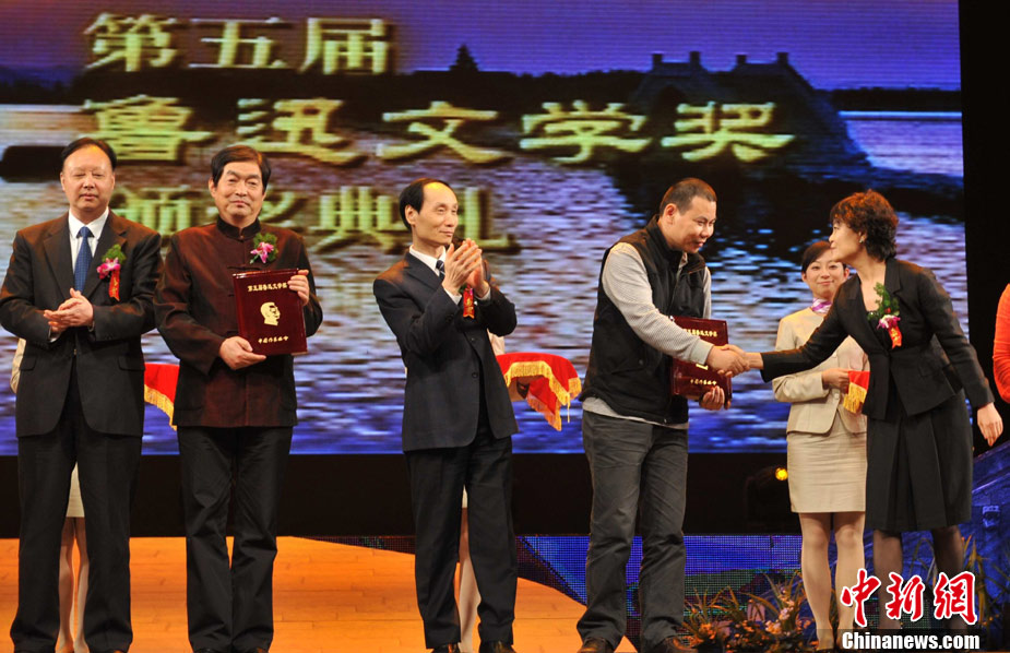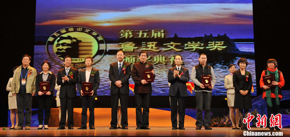 11月9日晚,第五屆魯迅文學獎頒獎典禮在魯迅故鄉浙江紹興舉行。30位魯迅文學獎得主分別獲得報告文學、散文雜文、詩歌、評論、中篇小說、短篇小說等類別的獎項。武漢市紀委書記車延高的詩集《向往溫暖》摘得魯迅文學獎詩歌獎項。袁云 攝
