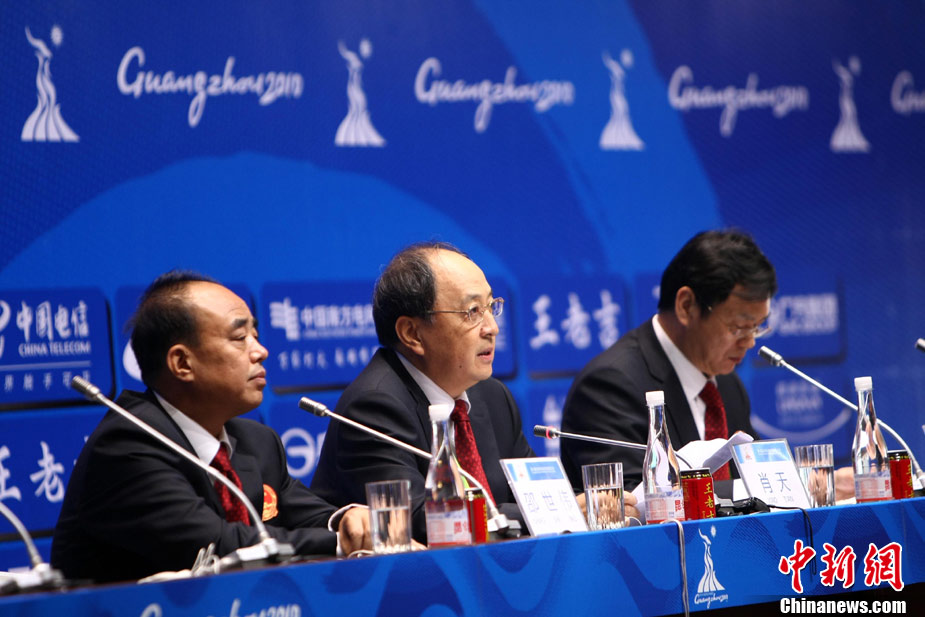 11月10日,中國體育代表團新聞發布會在亞運主媒體中心一號新聞廳召開。中國體育代表團副團長肖天就目前媒體記者關注的問題做了回答。 中新社記者 杜洋攝