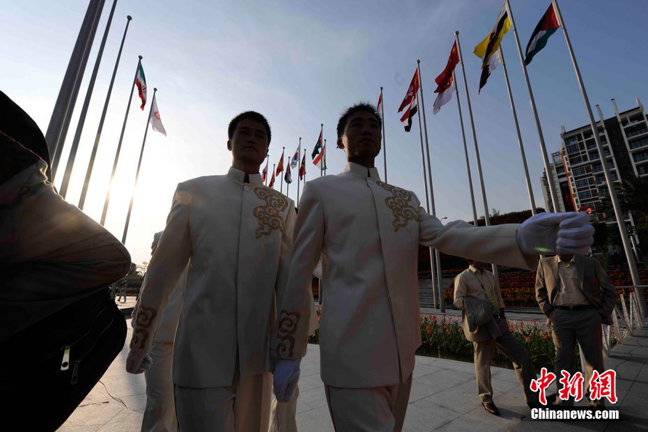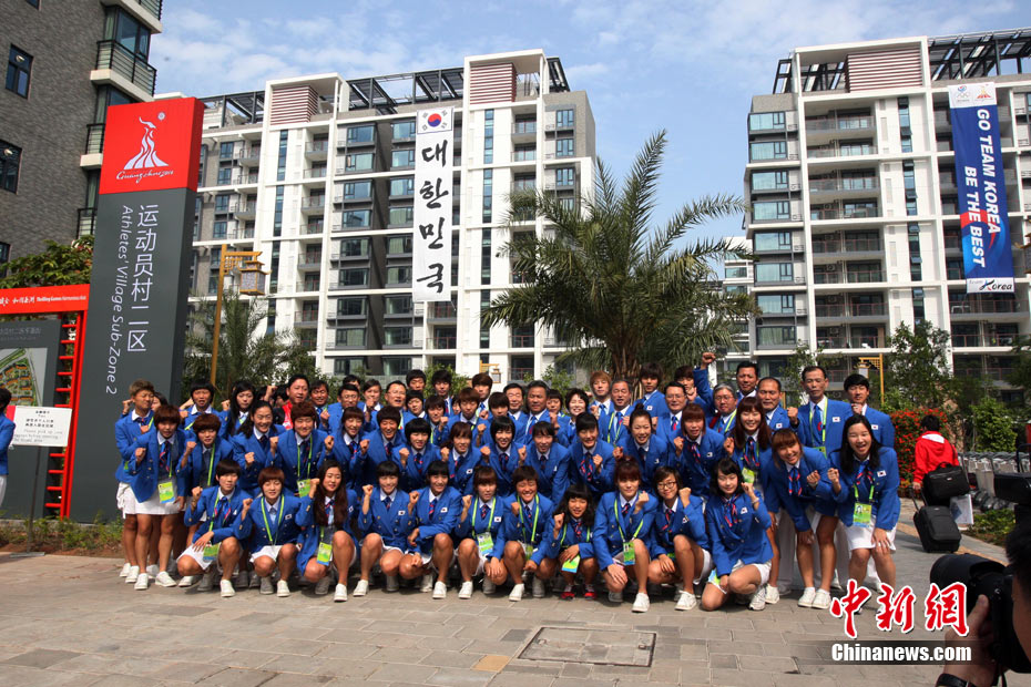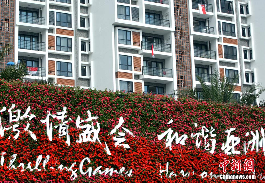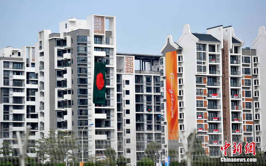 和歷屆亞運(yùn)會(huì)不同,廣州亞運(yùn)會(huì)沒(méi)有延續(xù)“亞運(yùn)村”的概念,而是打造了一座亞運(yùn)城,而運(yùn)動(dòng)員村則是亞運(yùn)城的核心。運(yùn)動(dòng)員村位于亞運(yùn)城內(nèi),總建筑面積59.1332萬(wàn)平方米。運(yùn)動(dòng)員村共有49棟公寓樓、3598套公寓、9272間客房。應(yīng)該說(shuō),運(yùn)動(dòng)員村是一個(gè)高度專業(yè)化、集約化和規(guī)范化的居住區(qū)域,這里將為運(yùn)動(dòng)員及隨隊(duì)官員提供住宿分配、客房、洗衣、布草洗滌、居民服務(wù)中心等住宿服務(wù),全部是一條龍服務(wù)。圖為運(yùn)動(dòng)員公寓外景,不少運(yùn)動(dòng)員將自己國(guó)家的國(guó)旗懸掛在窗外。中新網(wǎng)記者 金碩 攝