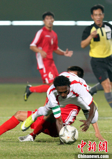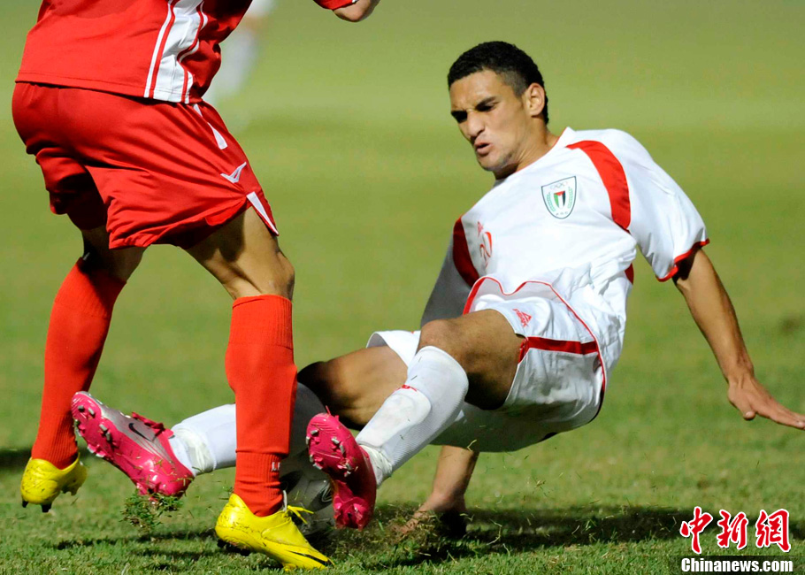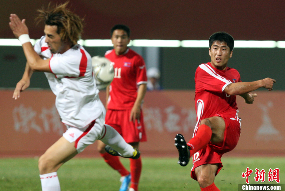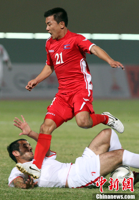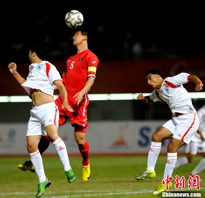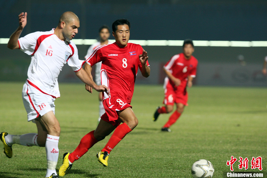11月10日,廣州亞運(yùn)會(huì)男子足球小組賽C組第24場朝鮮與巴勒斯坦的比賽在番禹英東體育場舉行。最終,朝鮮以3比0戰(zhàn)勝巴勒斯坦。中新社記者 湯彥俊 攝
