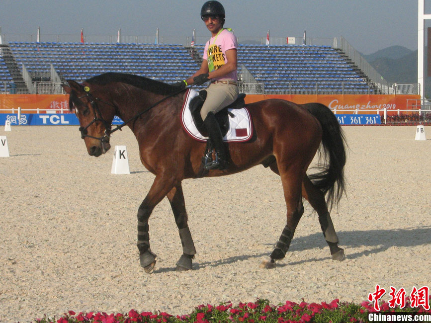 參加亞運(yùn)馬術(shù)比賽的部分馬匹已經(jīng)抵達(dá)廣州,并入住高規(guī)格馬廄,享受全天候服務(wù)的尊貴禮遇,圖為參賽馬匹10日正在從化馬術(shù)場訓(xùn)練以適應(yīng)場地。
