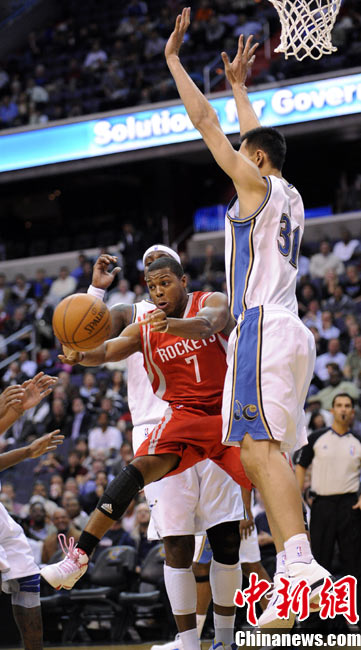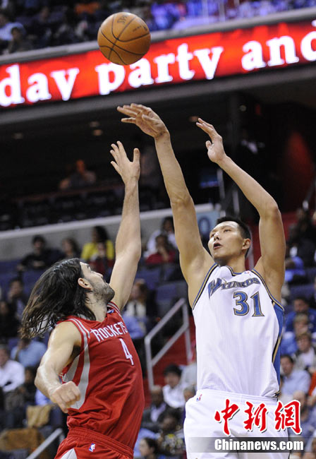 北京時(shí)間11日,NBA“中國德比”在華盛頓打響。姚明所在的火箭客場(chǎng)以91-98不敵易建聯(lián)效力的奇才。姚明和易建聯(lián)兩人并沒在場(chǎng)上面對(duì)面交手。姚明只打了6分鐘就受傷遺憾提前離場(chǎng)。易建聯(lián)此后替補(bǔ)上場(chǎng),兩人失之交臂。此役阿聯(lián)表現(xiàn)搶眼,全場(chǎng)蓋帽4次,還貢獻(xiàn)了13分,搶下7個(gè)籃板。