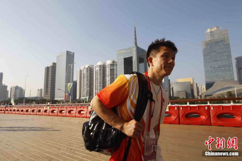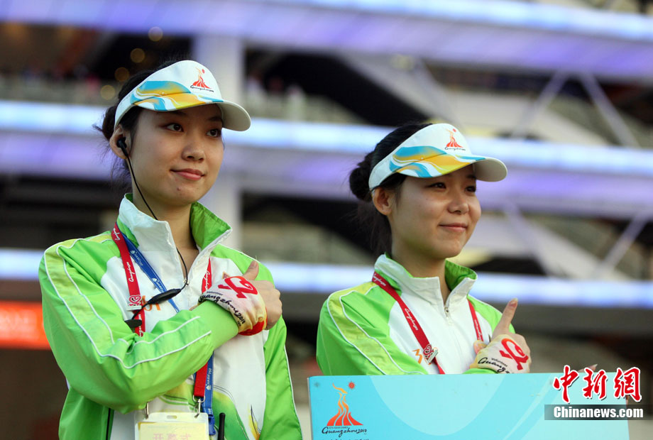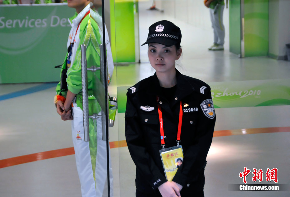 11月12日,廣州亞運會開幕式即將在海心沙島舉行,圖為開幕式現場外執勤的美麗警花。中新網記者 盧巖 攝