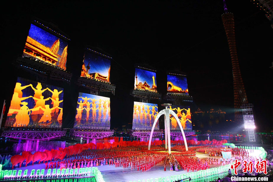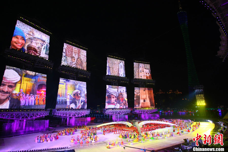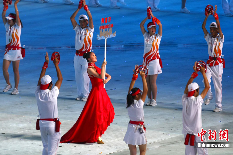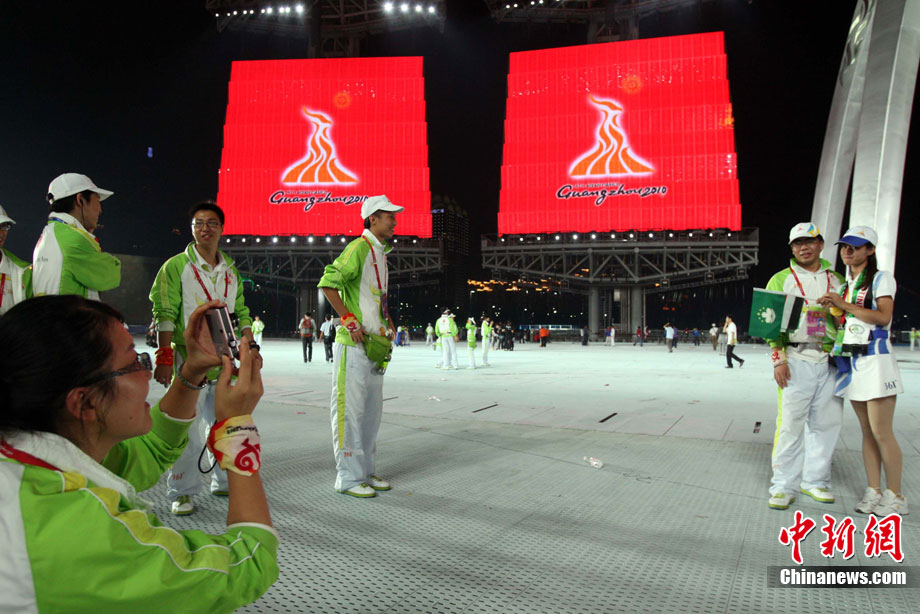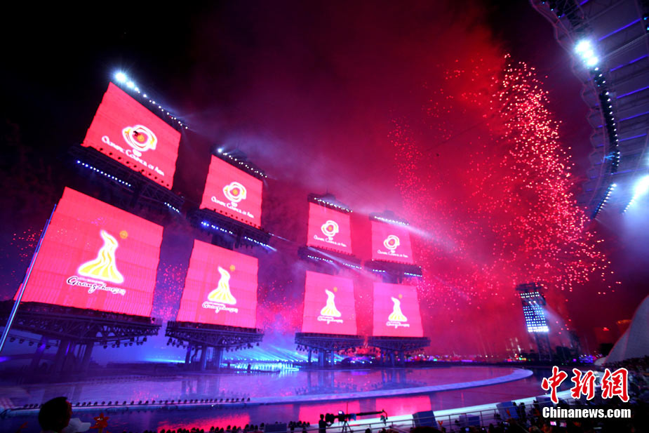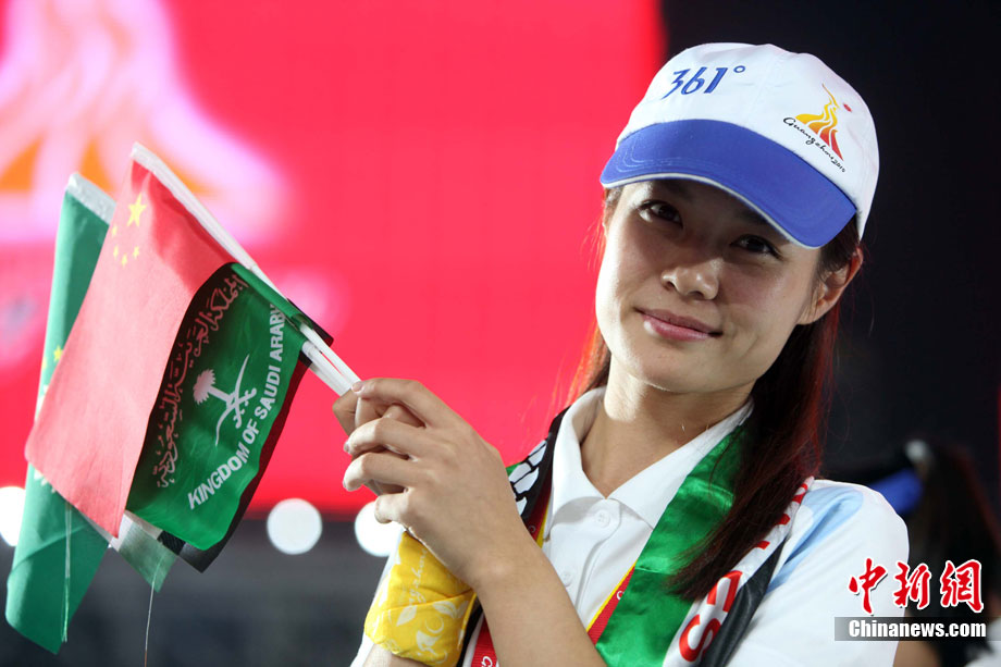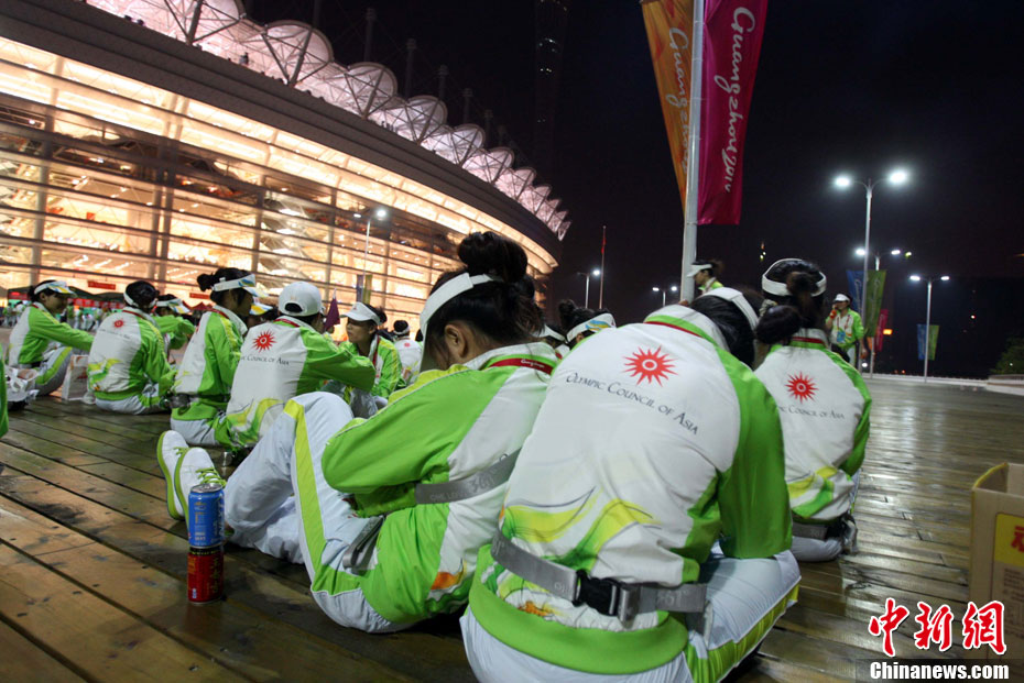 11月12日晚,第16屆亞運(yùn)會(huì)開幕式在廣州海心沙舉行。圖為美女志愿者。中新社記者 湯彥俊 攝