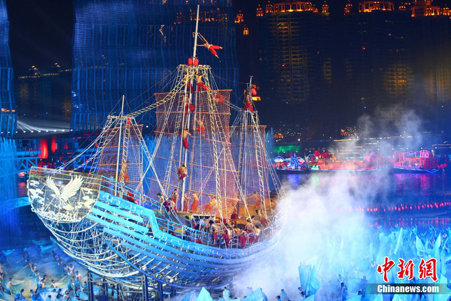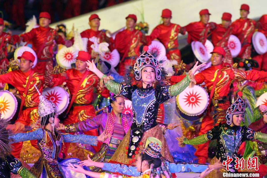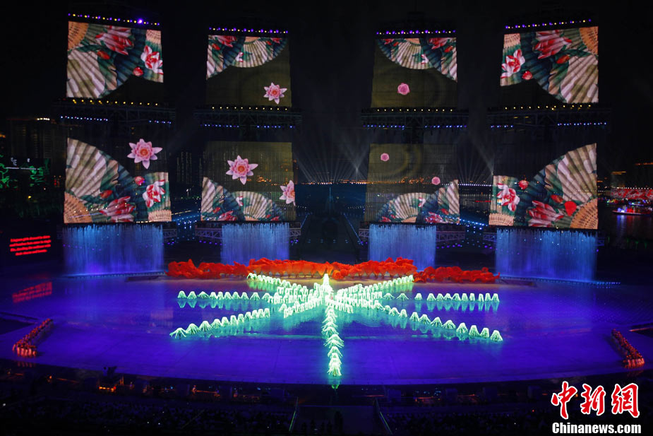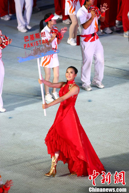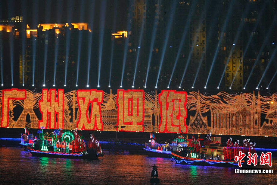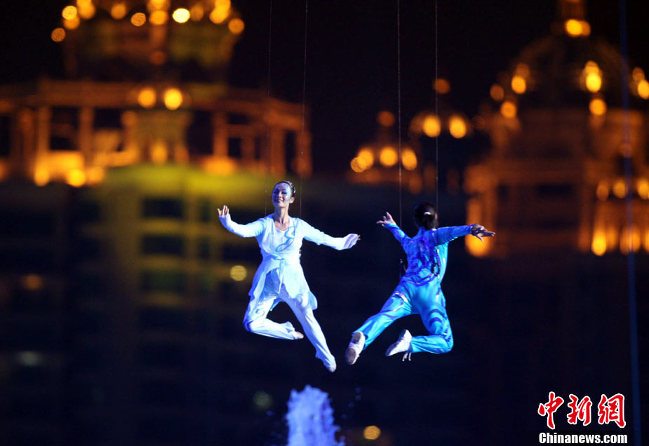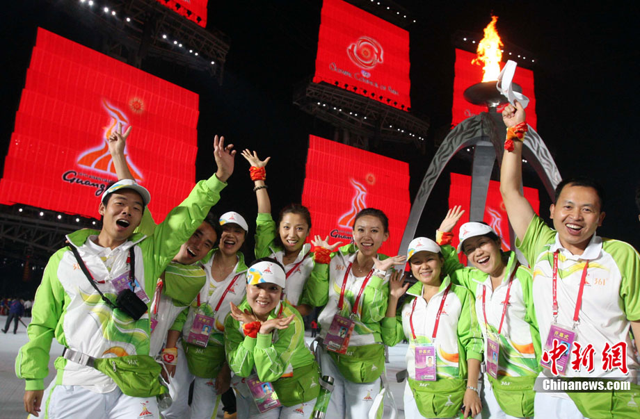 11月12日晚,第16屆亞運(yùn)會(huì)開幕式在廣州海心沙舉行。圖為美女志愿者。中新社記者 湯彥俊 攝