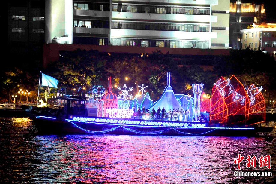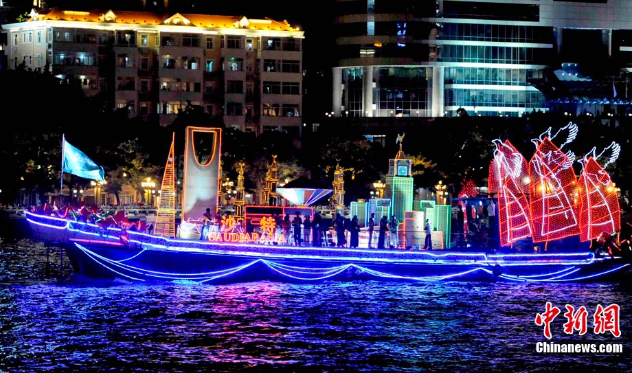 11月12日晚,萬眾企盼的2010年廣州亞運會在珠江之中海心沙小島上啟航。亞奧理事會的45個成員全部參賽,再次實現(xiàn)亞奧理事會大家庭的大團圓;ù灿问菑V州亞運會開幕式的一大創(chuàng)舉。每艘花船都經(jīng)過精心的設(shè)計與裝扮,以亞洲各個國家和地區(qū)最具特色的名勝古跡為原型的造型成為花船的“身份標志”。