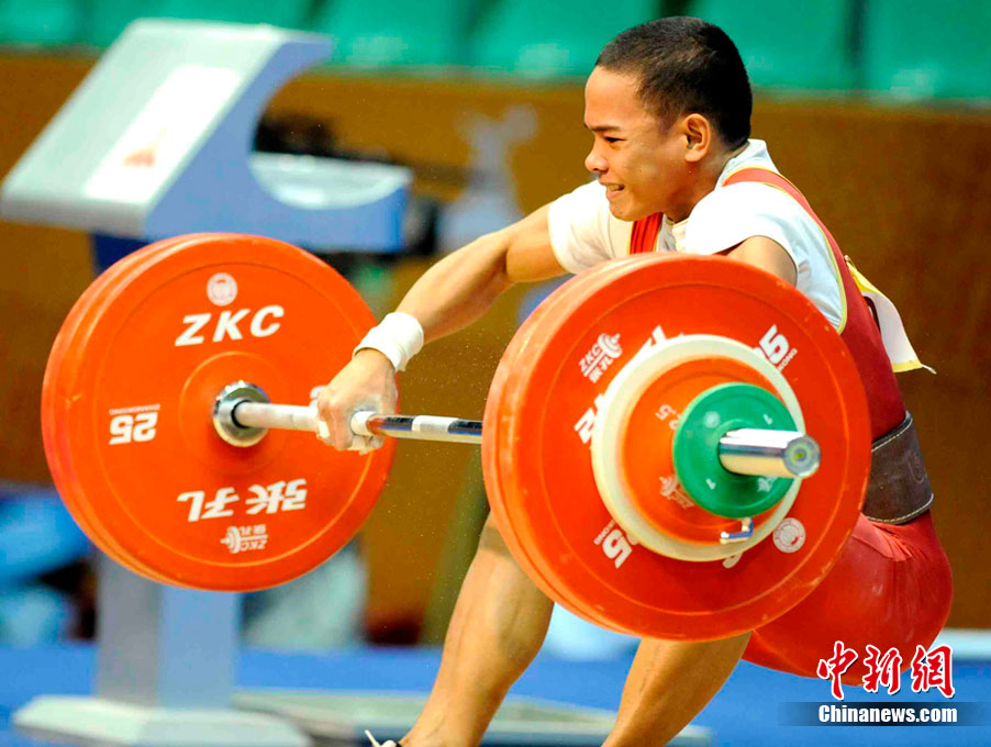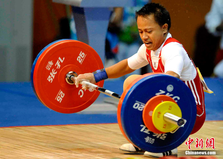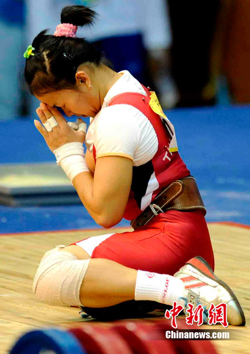 11月13日,廣州亞運會舉重比賽全面開戰,賽場上選手們失利的瞬間讓人揪心不已。 中新社記者 王東明 攝