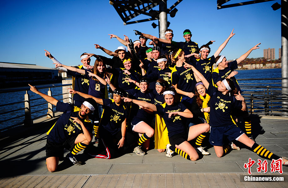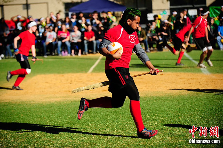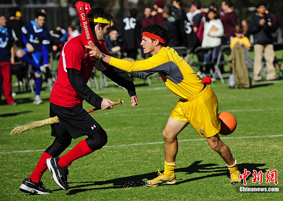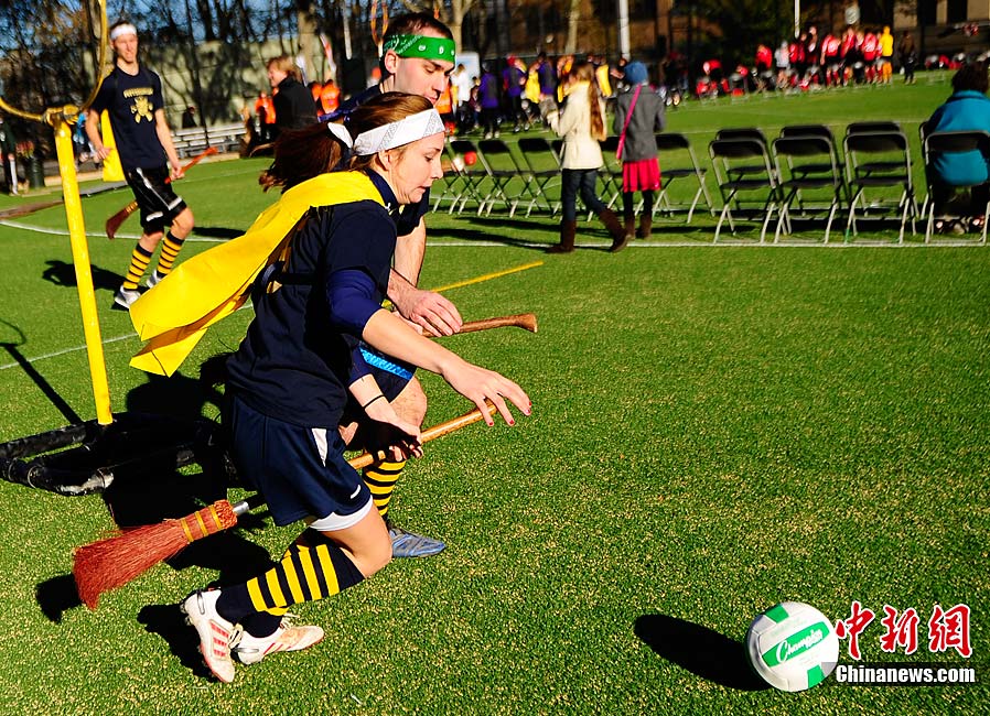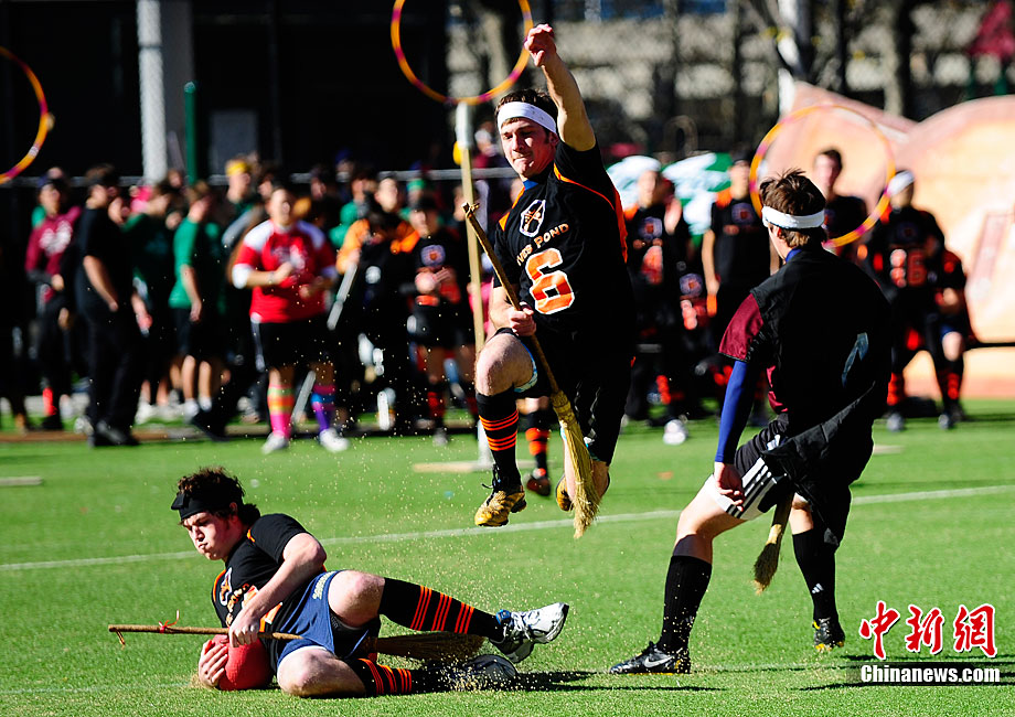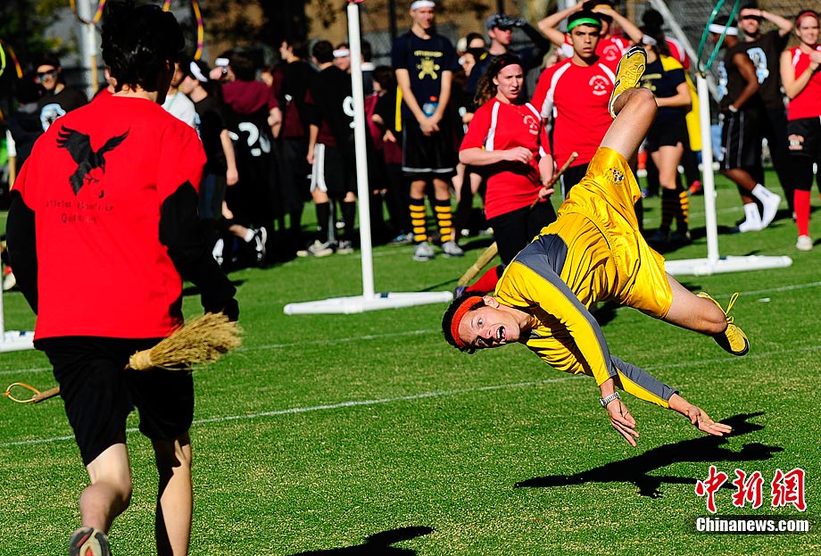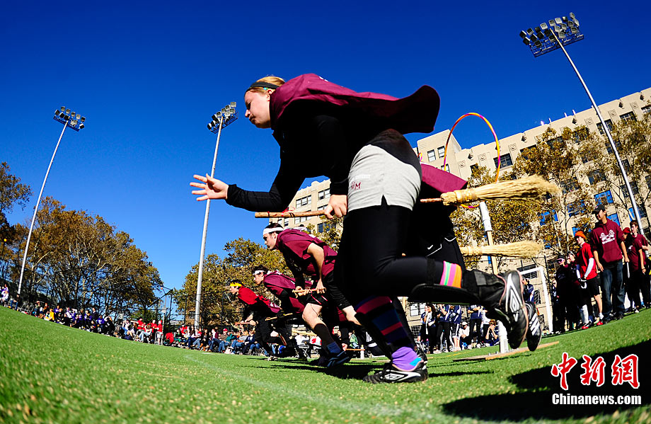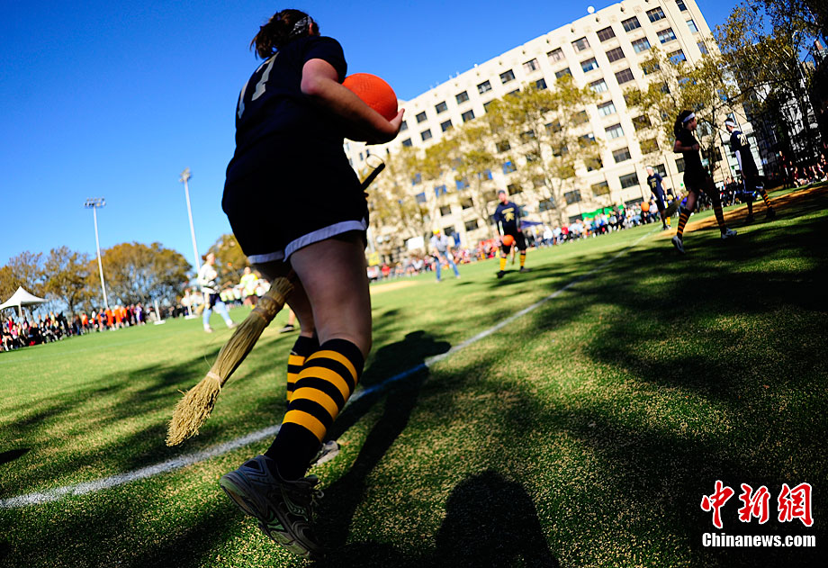 當地時間11月13日,數百名哈利波特迷們在美國紐約舉行了第四屆魁地奇世界杯比賽。看過《哈利·波特》小說或電影的人都會對其中描寫的魁地奇球賽印象深刻。現實版的魁地奇比賽嚴格遵循原著風格,并發展成了一項混合手球、躲避球,還摻雜了一點曲棍球的新奇運動。