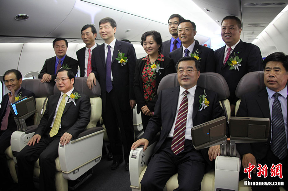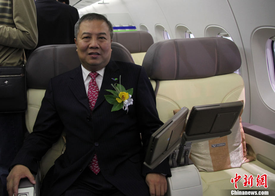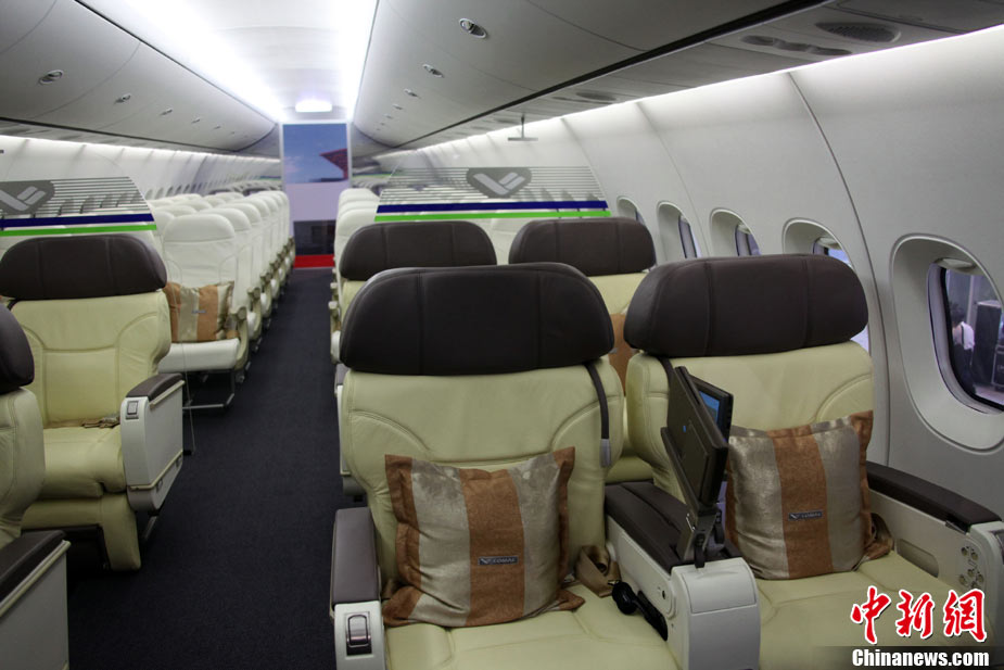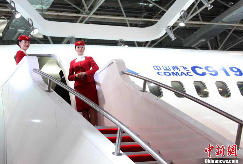 11月15日下午,中國C919大型客機展示樣機在珠海航展揭幕,這是中國C919大型客機1:1展示樣機首次亮相。中國C919大型客機是中國擁有自主知識產權的中短程商用干線飛機,其基本型全經濟級布局為168座,混合級布局為156座,其標準航程型設計航程為4075公里,增大航程型設計航程為5555公里。按計劃,C919大型客機2010年完成初步設計,2012年完成詳細設計,2014年實現首飛,2016年完成適航取證并投放市場。中新社記者 孫自法 攝