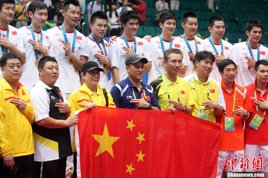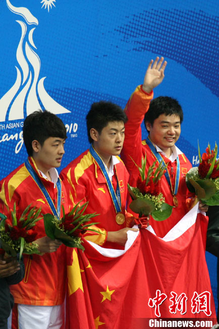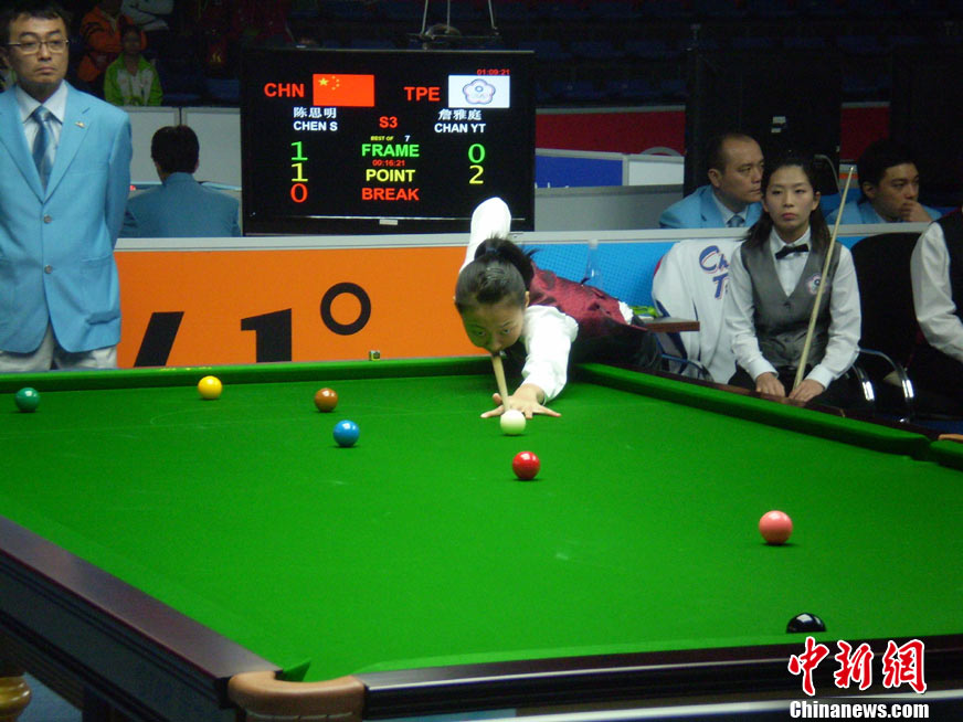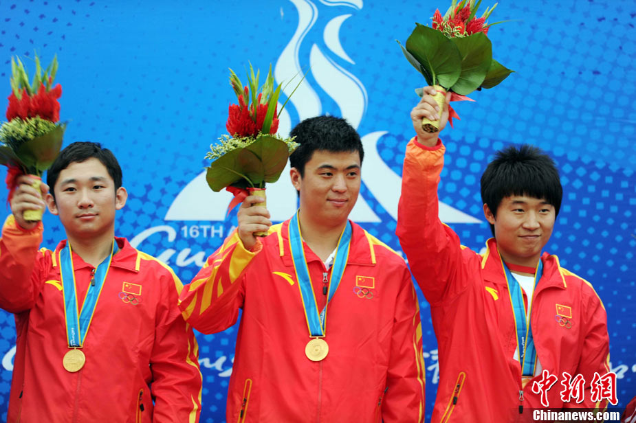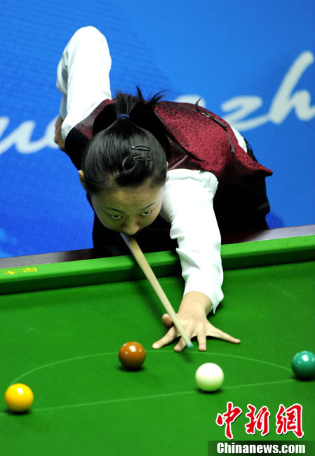 11月15日在廣州亞運城體育館舉行的男子斯諾克團體中國與印度的決賽中,丁俊暉、梁文博、田鵬飛以優(yōu)異的成績成功衛(wèi)冕,他們出色的表現(xiàn)引得滿堂喝彩。 中新社記者 張茵 攝