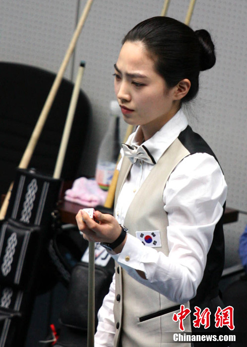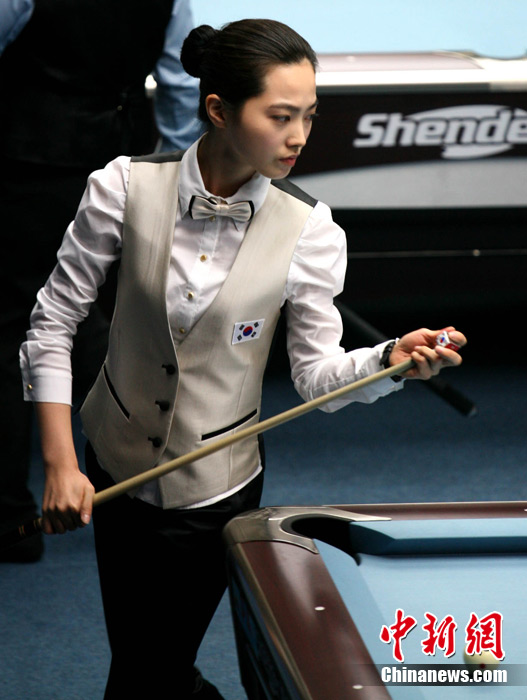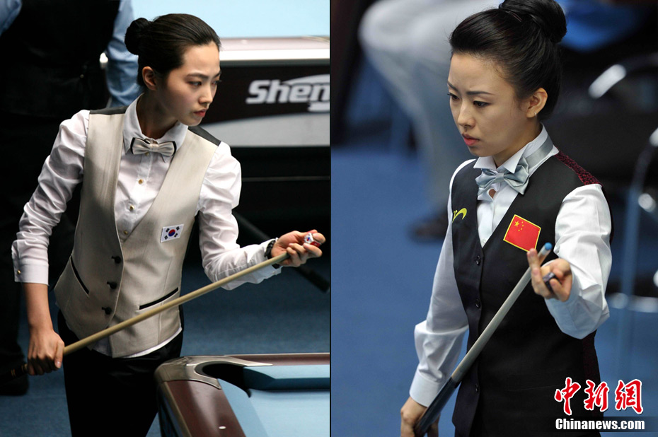 11月15日,女子美式九球單打預(yù)賽,來自中國的潘曉婷和來自韓國的車侑藍(lán)(車俞嵐)分別戰(zhàn)勝對手,晉級下一輪,兩位知名選手的亮相,掀起場內(nèi)的“美麗風(fēng)暴”。
