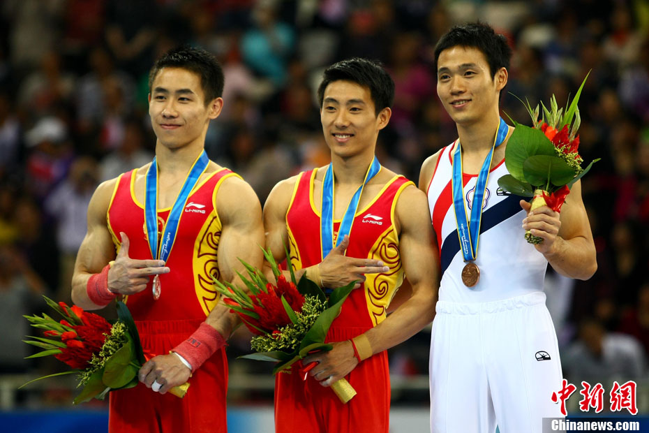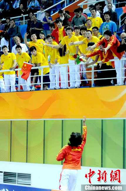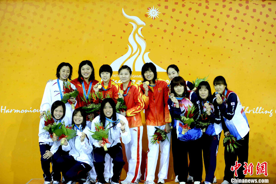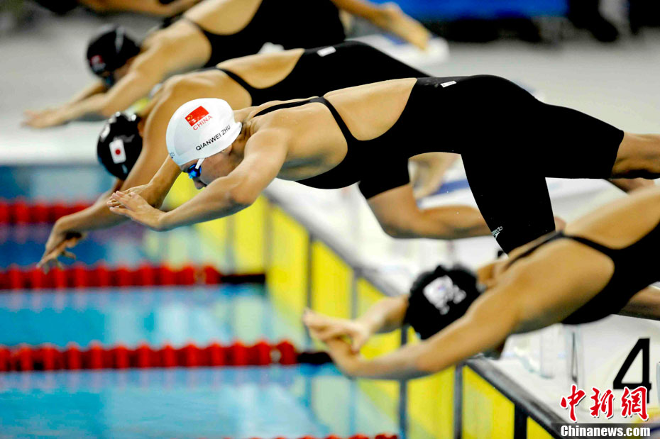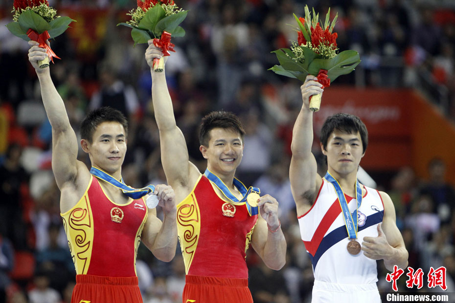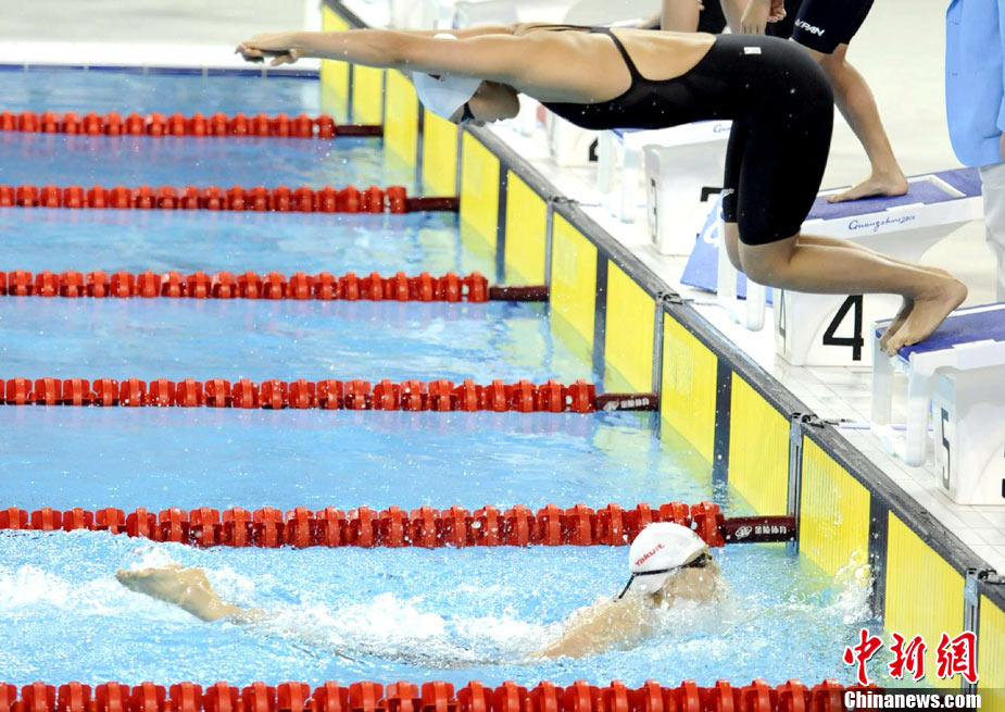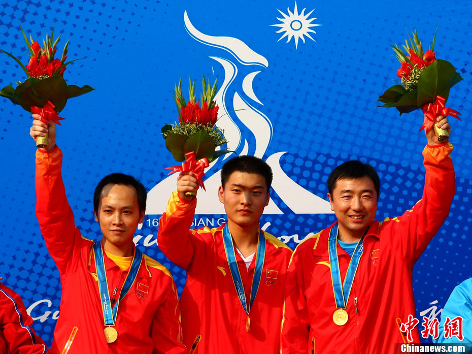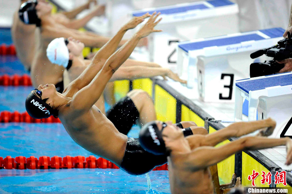 11月16日,韓國(guó)選手樸泰桓力壓中國(guó)張琳、孫楊獲得亞運(yùn)會(huì)男子400米自由泳金牌。中新社記者 王東明 攝