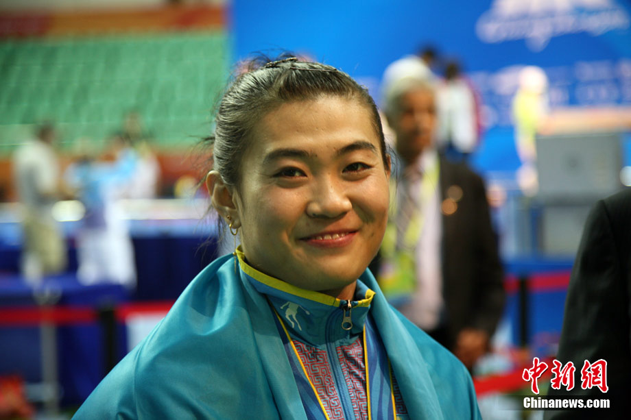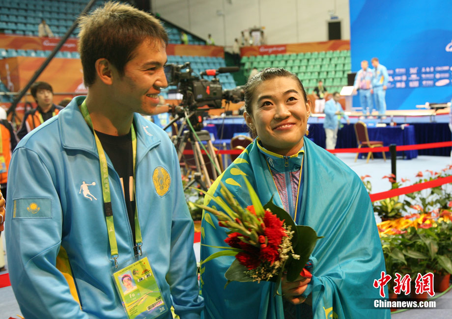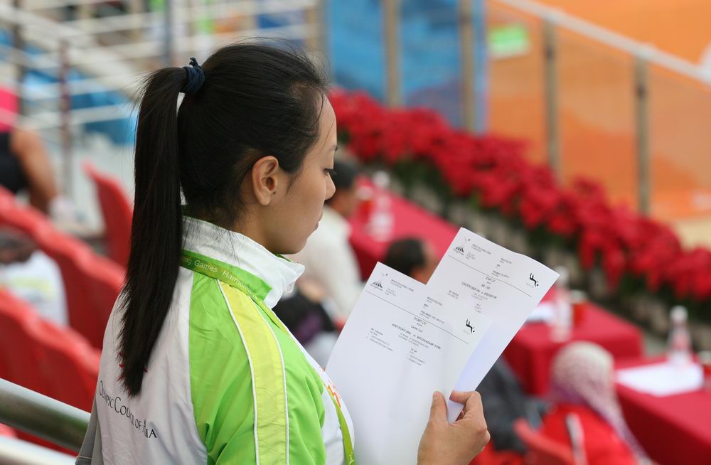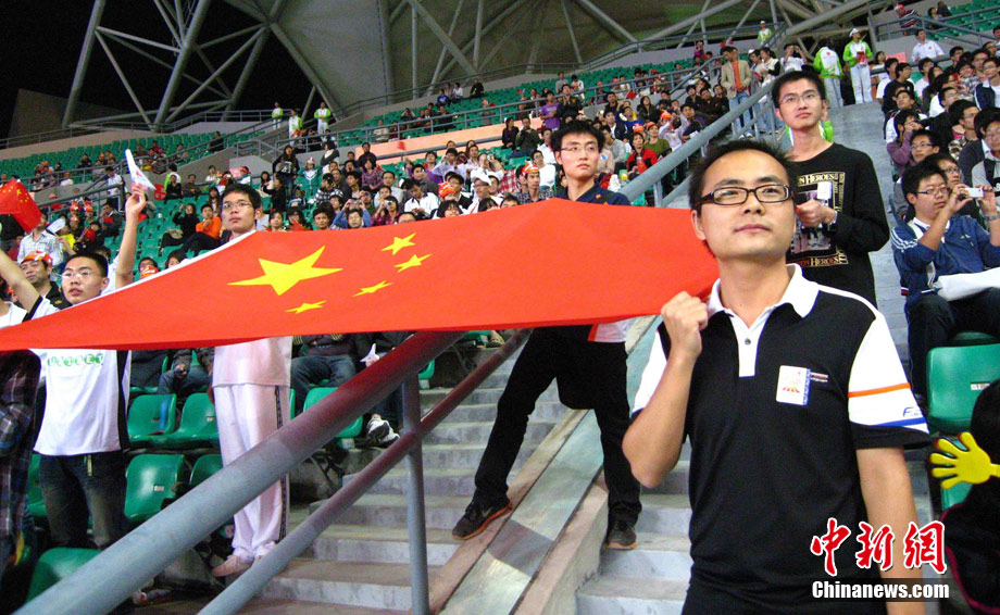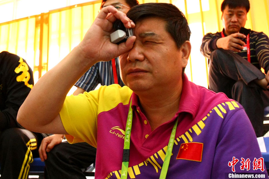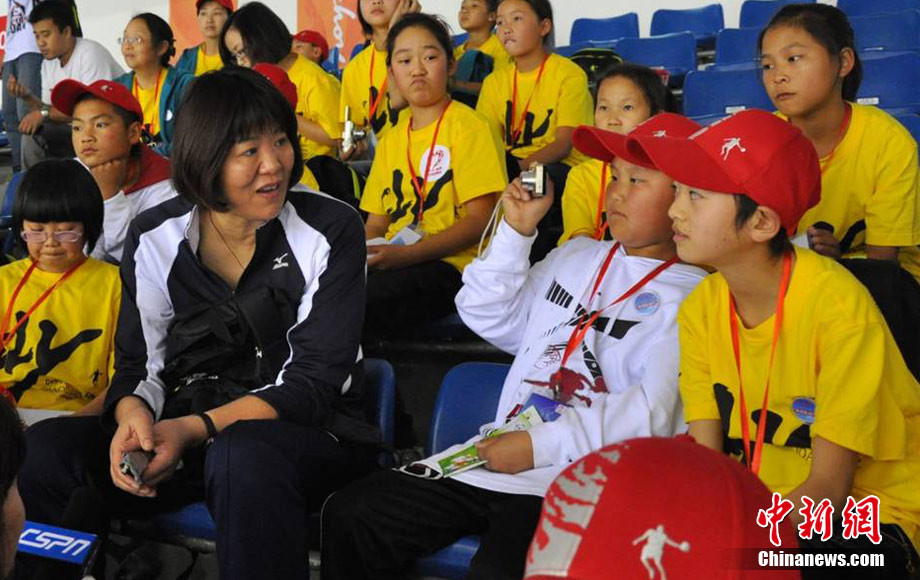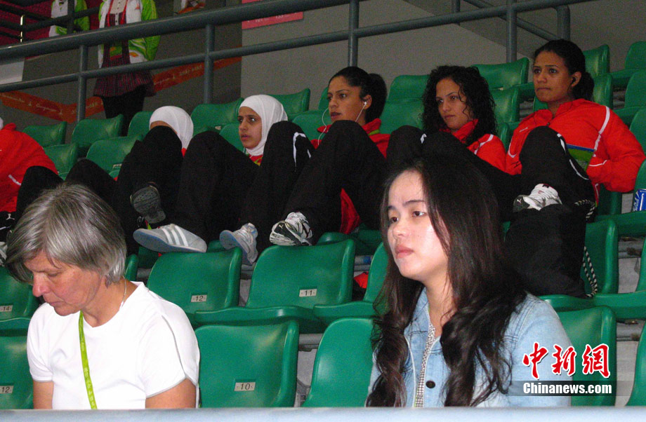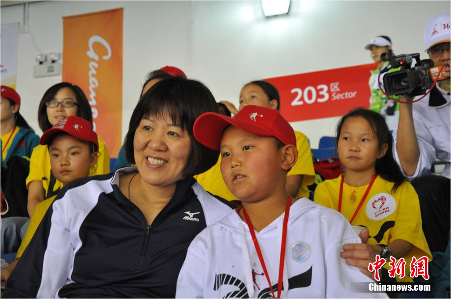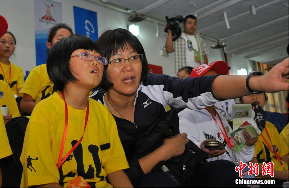 昔日排壇名宿、有著“鐵榔頭”稱號的郎平11月16日現身亞運會賽場。此次郎平不是以一名教練的身份出現在賽場,而是作為“喬丹運動營”特邀嘉賓,帶領來自全國11個省市的希望小學的優秀教師和學員們觀看比賽。中新社記者 沈晨 攝