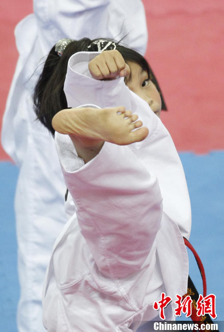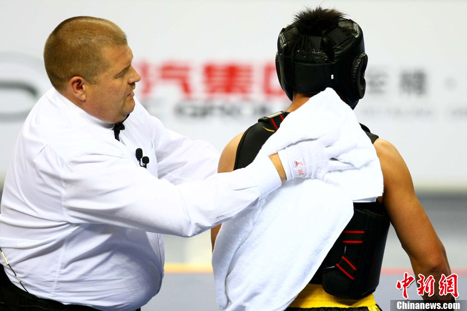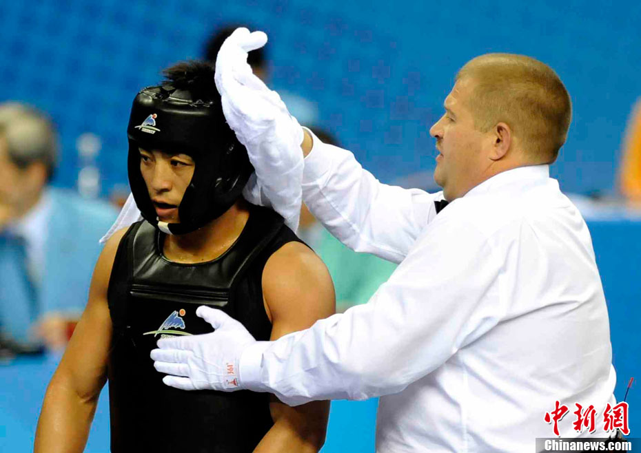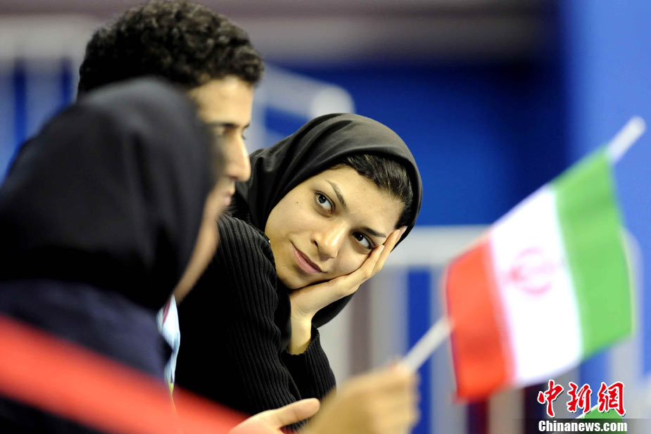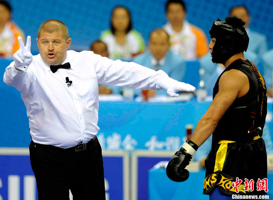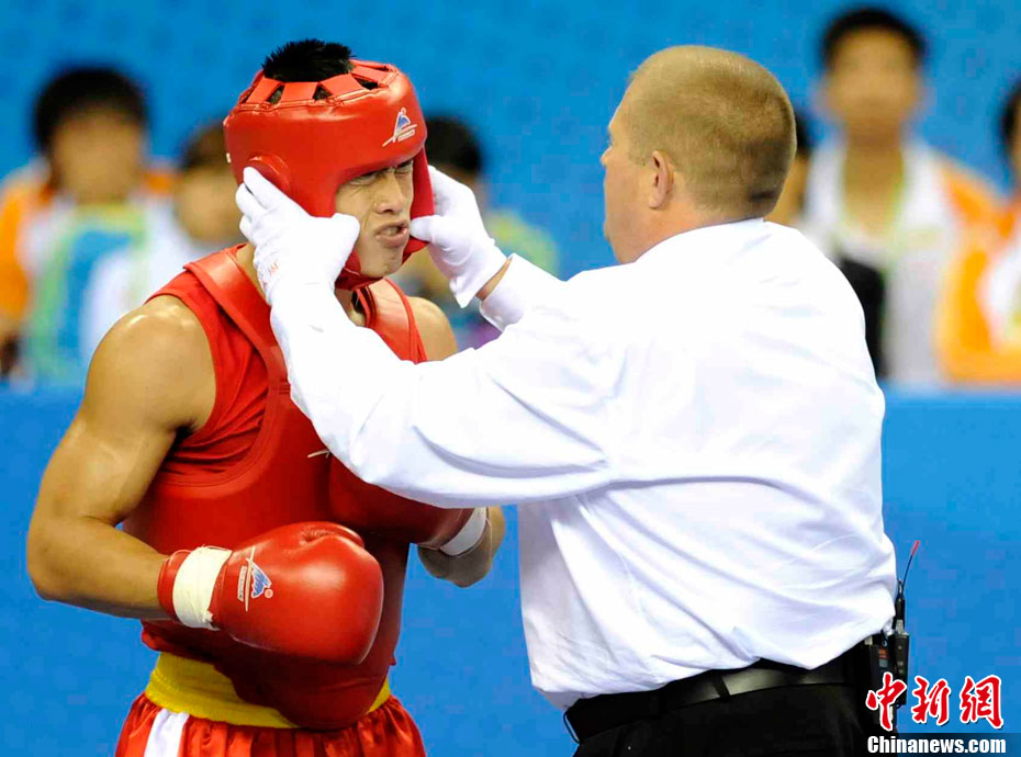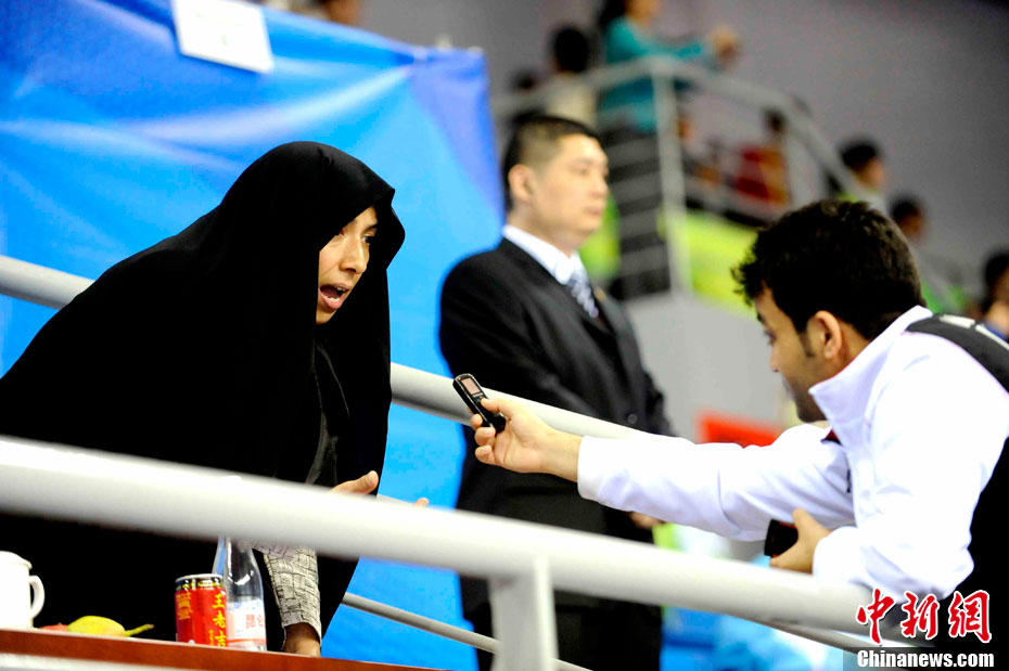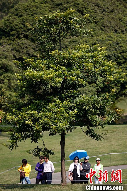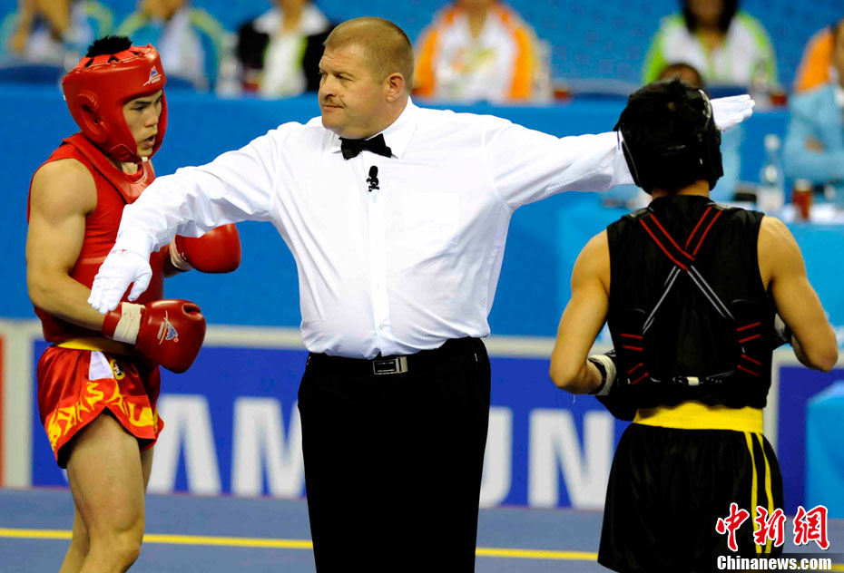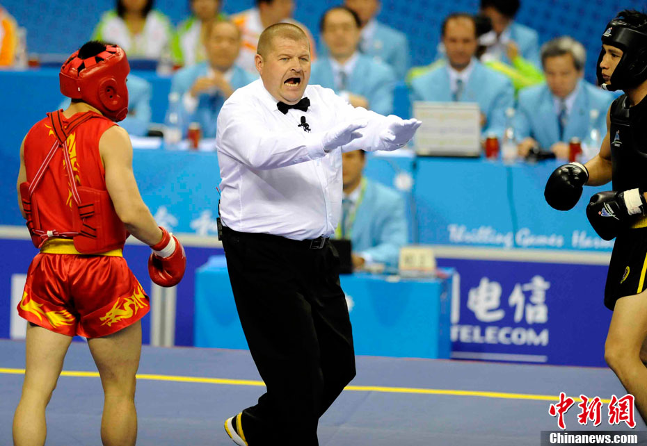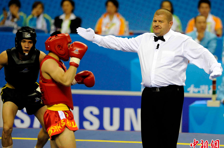 11月17日,廣州亞運會高爾夫球賽在廣州九龍湖高爾夫球會開賽,當日共進行男子個人、男子團體和女子個人、女子團體四個項目的第一輪比賽。圖為志愿者在賽場舉牌維護秩序。 中新社記者 盛佳鵬 攝