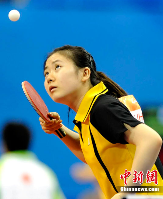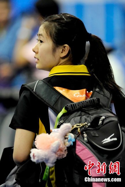 11月18日,廣州亞運會乒乓球比賽在廣州體育館進行,有“瓷娃娃”美譽的日本選手福原愛在比賽現場獲得極高人氣,也是除中國選手外現場獲得掌聲最多的外籍選手。中新社記者 王東明 攝