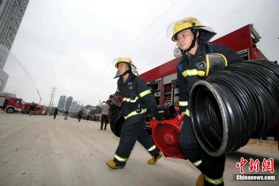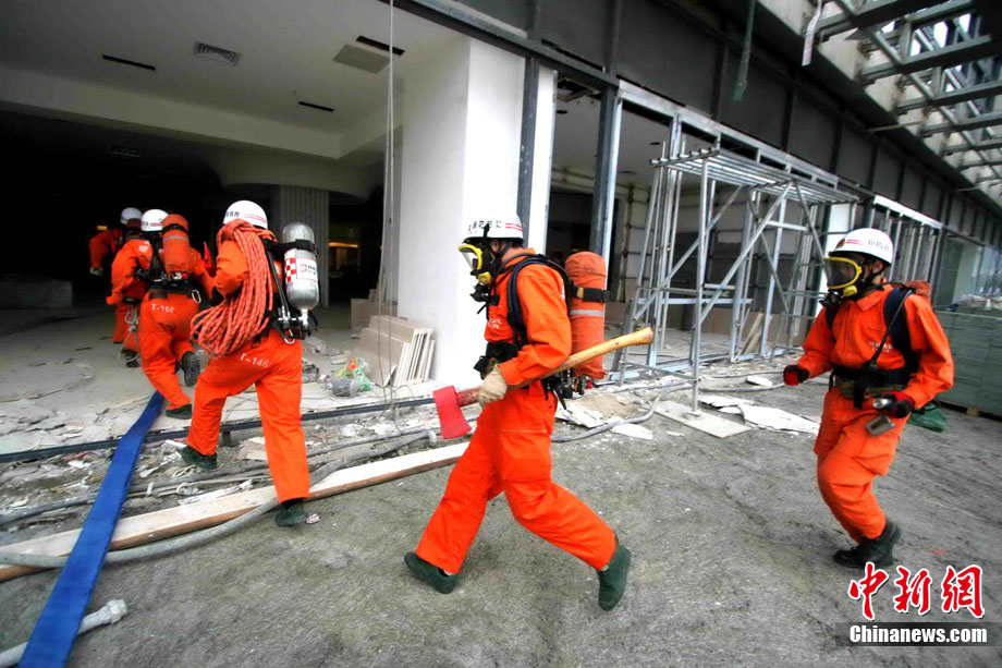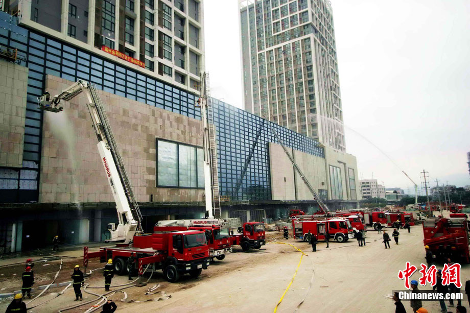 中新網福州11月18日電 (朱曉航 黃綠榮)為吸取“11.15”上海市靜安區膠州路在建高層教師公寓樓特大火災事故教訓,福州18日在該市臺江區舉行了一場大型滅火救援演練。