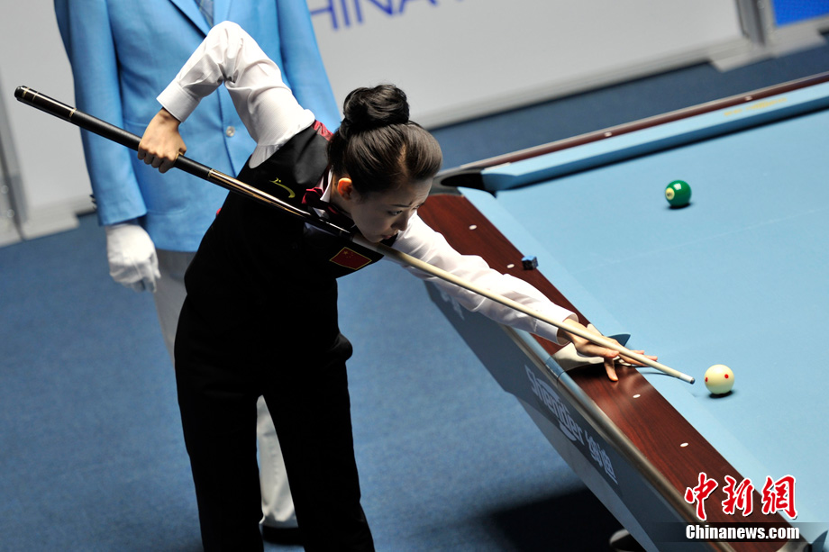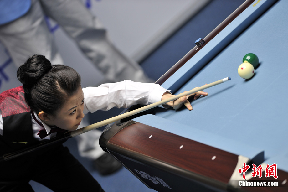 11月19日下午,廣州亞運(yùn)會(huì)女子美式9球單打決賽在亞運(yùn)城體育館上演,經(jīng)過2個(gè)多小時(shí)的激烈角逐,中國選手潘曉婷以7:5力克中華臺(tái)北選手周婕妤,最終奪冠。中新網(wǎng)記者 金碩 攝