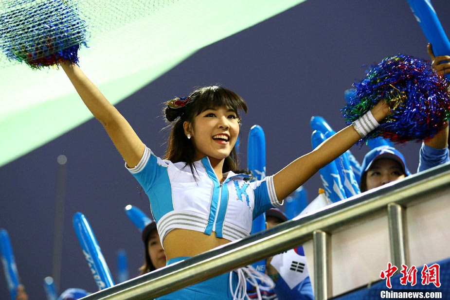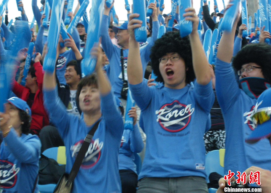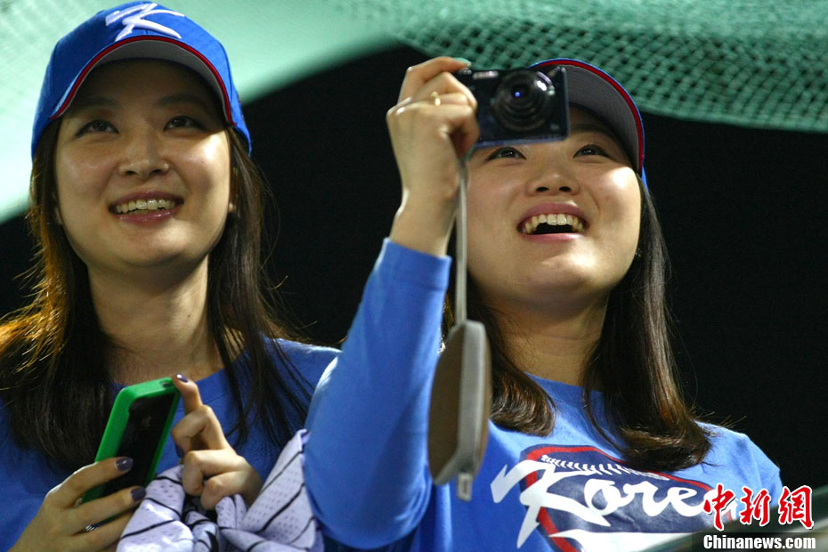 11月19日,廣州亞運(yùn)會棒球項(xiàng)目的比賽結(jié)束了全部爭奪,最終韓國隊(duì)以9:3戰(zhàn)勝中華臺北隊(duì),摘得金牌。圖為在頒獎儀式中,韓國球員在看經(jīng)過面前的頒獎禮儀小姐。中新社記者 富田 攝